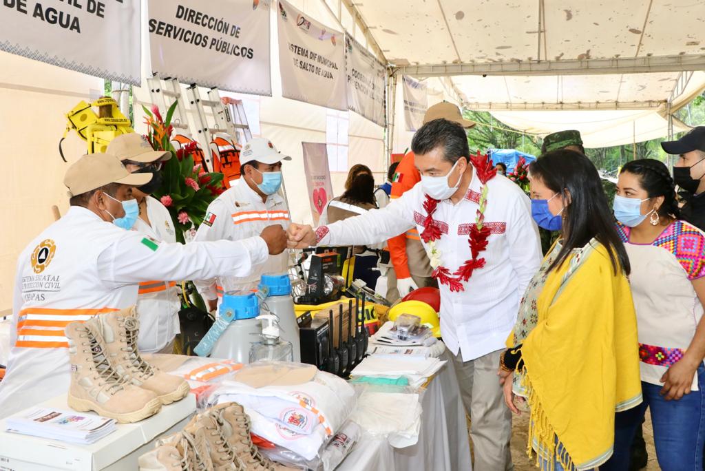 Finalmente, Dulce María Arcos Espinoza, segunda regidora del Ayuntamiento de Salto de Agua, en representación del presidente municipal, agradeció a los gobiernos federal y estatal por las distintas acciones que realizan a favor de este municipio, como en esta ocasión que se brinda apoyo para fortalecer la seguridad y protección de la gente.