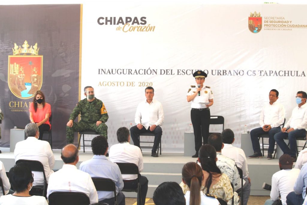 Tapachula, Chiapas.– La titular de la Secretaría de Seguridad y Protección Ciudadana, Gabriela Zepeda Soto, destacó que con la puesta en marcha del proyecto Escudo Urbano C5 en el municipio de Tapachula, se fortalecerán las acciones de seguridad y vigilancia en la Región del Soconusco, considerada una de las zonas económicas más importantes de la entidad.