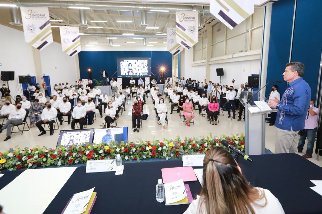 • El gobernador asistió al Tercer Informe de Actividades del rector Carlos Natarén Nandayapa, a quien reconoció por su labor al frente de la máxima casa de estudios