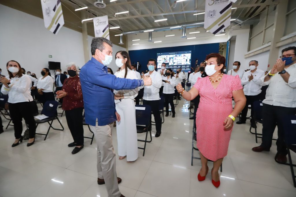 “La Unach es semillero de mujeres y hombres profesionistas talentosos que han tenido éxito en la administración pública y también en la iniciativa privada. Estamos orgullosos de nuestra universidad, por eso no la dejaremos caer y la vamos a recuperar completamente, para que las y los jóvenes se preparen adecuadamente, porque al tener un pueblo educado y con mayores niveles académicos vamos a tener mejores expectativas de crecimiento y bienestar”, apuntó.
