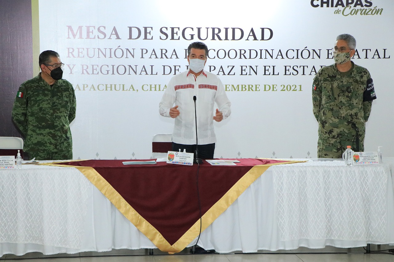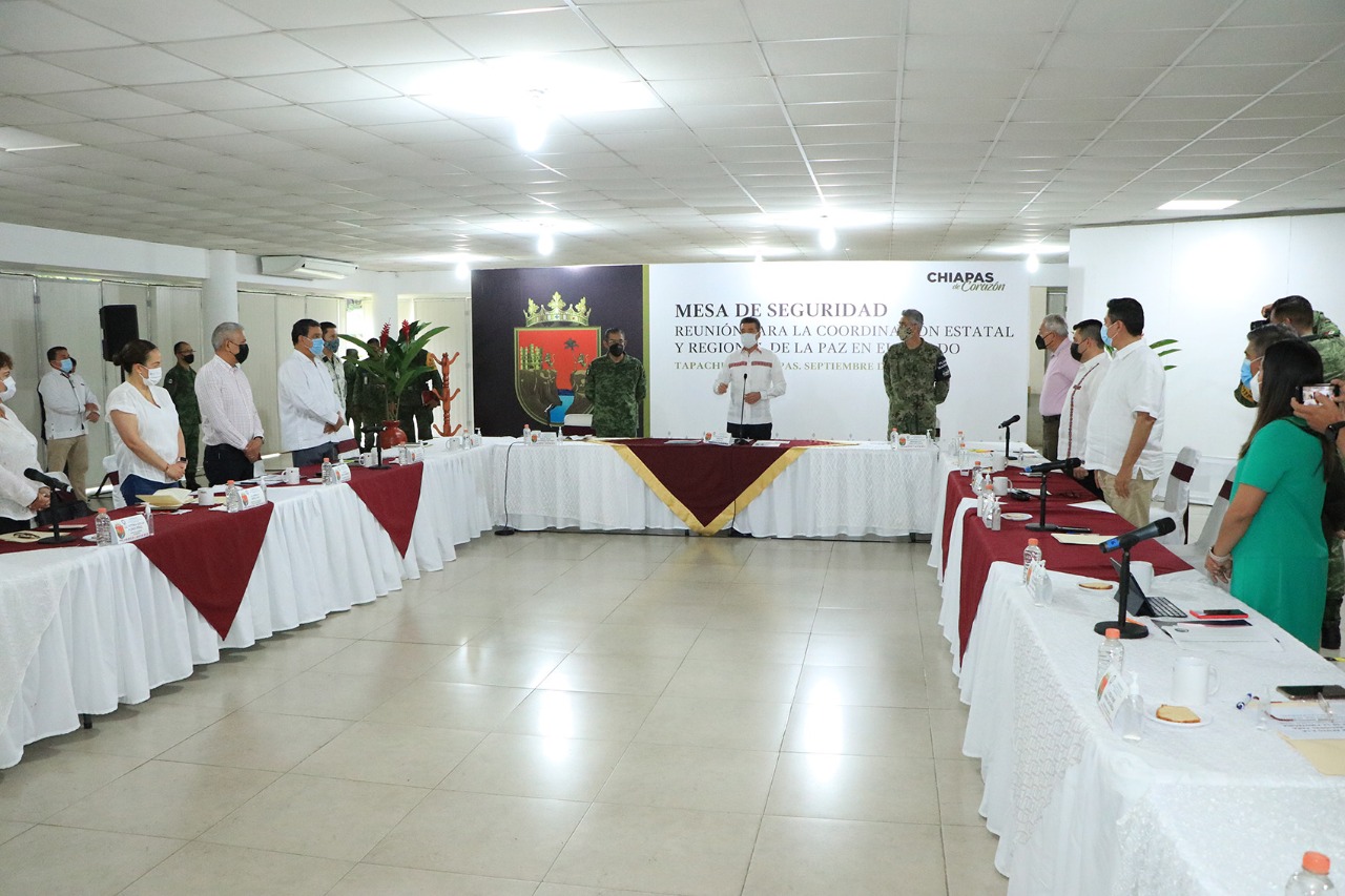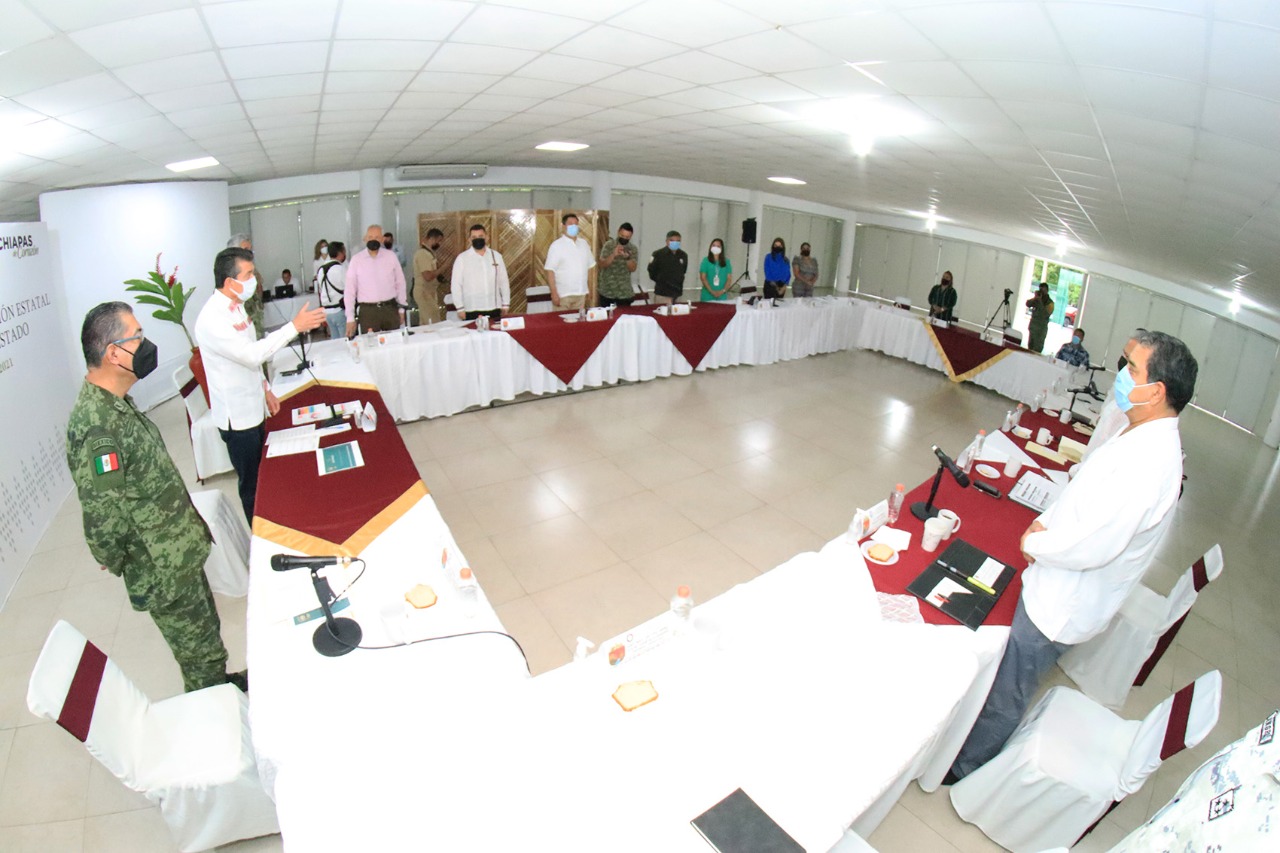 Asimismo, el jefe de Estación del Centro Nacional de Inteligencia en Chiapas, Víctor Hugo Mier González; el titular de la Oficina de Representación en Chiapas del Instituto Nacional de Migración, Aristeo Taboada Rivera; el comandante de la 36 Zona Militar, Miguel Ángel Hernández Martínez; el comandante de la 14 Zona Naval, Abraham Eloy Caballero Rosas; el jefe de Estado Mayor de la 14 Zona Naval, Camerino Roa Vidal; el comandante de la Coordinación Estatal de la Guardia Nacional en Chiapas, Gerónimo José Antonio Noé Valdés López y el coordinador regional de la Guardia Nacional en Tapachula, José Alejandro Rangel Sánchez.