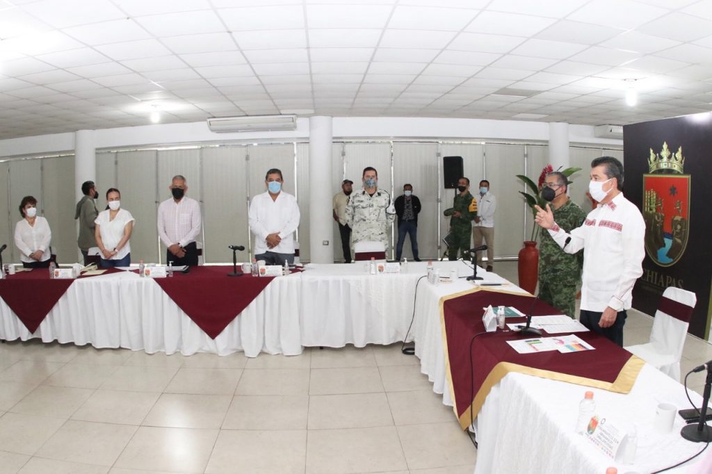 Al encabezar la Mesa de Coordinación Estatal para la Construcción de la paz y seguridad, desde el municipio de Tapachula, el gobernador Rutilio Escandón Cadenas subrayó que gracias a la labor del personal de salud y el esfuerzo de las autoridades federales, estatales y municipales, Chiapas va bien en la estrategia de vacunación anticovid, sin embargo, insistió en el llamado a las personas de 18 años en adelante a que acudan a los módulos a aplicarse el biológico.