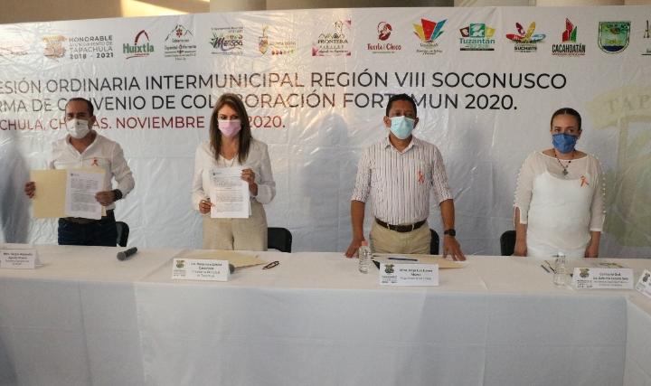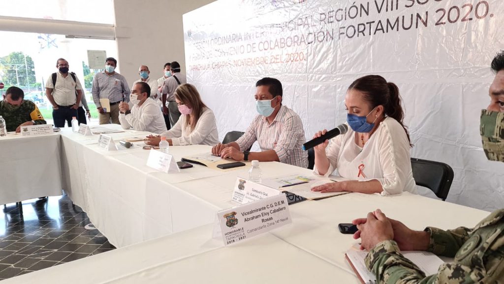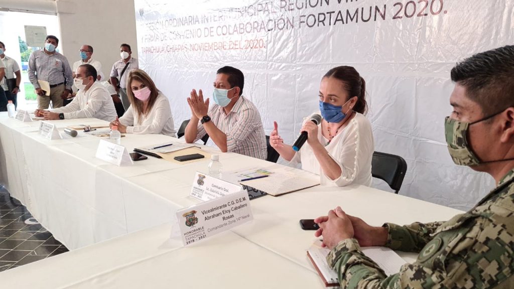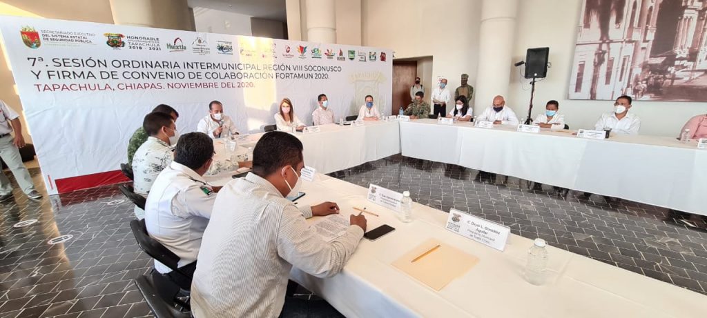 Tapachula, Chiapas.- Durante la sesión ordinaria del Consejo Intermunicipal de Seguridad Pública y la firma de convenio de colaboración Fortamun 2020, la secretaria de Seguridad y Protección Ciudadana (SSyPC), Gabriela Zepeda Soto, refrendó el compromiso del gobierno estatal de coadyuvar en la seguridad de los municipios, e instó a cada presidenta y presidente municipal a cumplir con la parte respectiva en la misión que mandata la Carta Magna en su artículo 21.