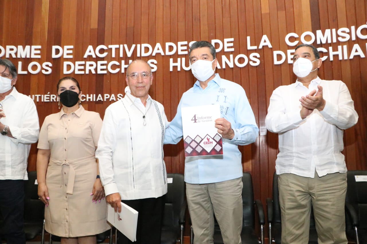 La Comisión Estatal de los Derechos Humanos (CEDH) rindió su Cuarto Informe de Actividades, en el que dio cuenta del estatus, las acciones desarrolladas y la labor que se ha realizado a favor de los derechos humanos de las personas, con el objetivo de que las chiapanecas y los chiapanecos vivan en libertad, de manera pacífica en colectividad, seguridad y bienestar.