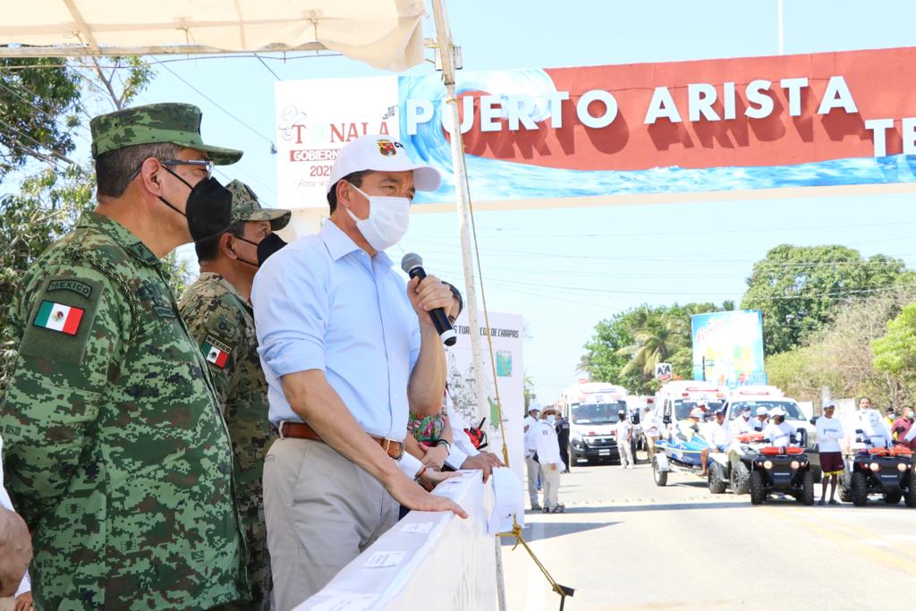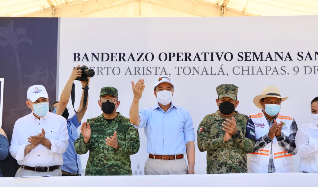Desde Puerto Arista, en el municipio de Tonalá, se llevó a cabo el arranque del Operativo “Semana Santa Segura 2022”, en el que participan elementos de las distintas corporaciones de seguridad pública, protección civil, turismo y salud, cuerpos de apoyo como Cruz Roja y Bomberos, además del respaldo del Ejército Mexicano, Marina y Guardia Nacional, con el objetivo de brindar protección, asistencia y auxilio a visitantes que acudirán a los diferentes destinos turísticos de Chiapas.