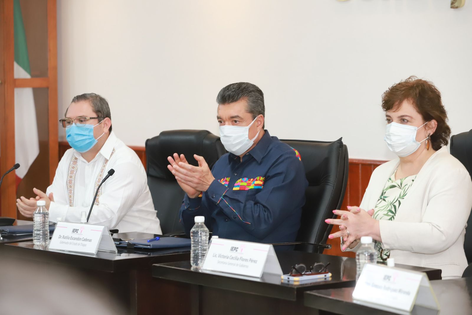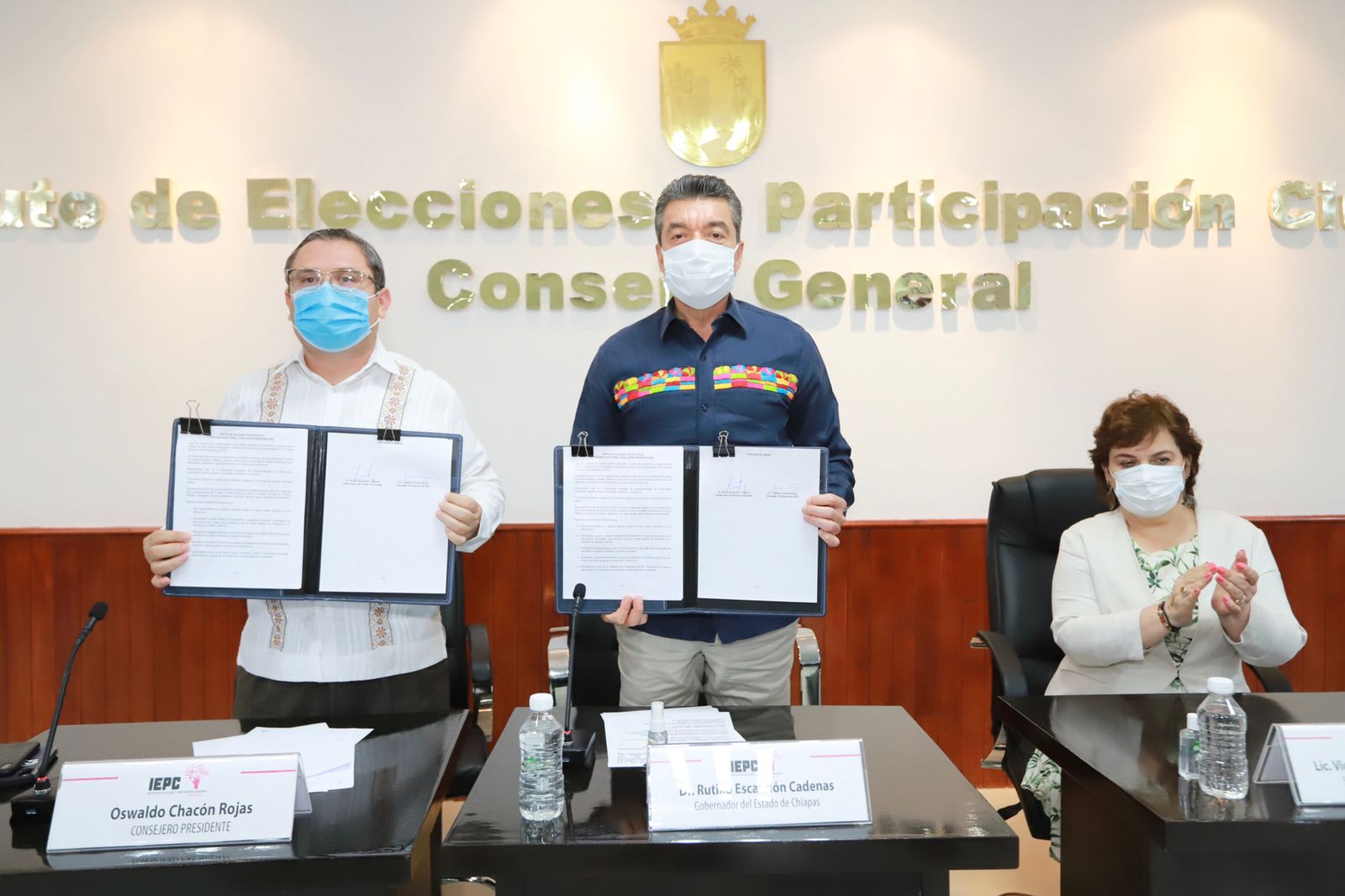 Al respecto, el gobernador Rutilio Escandón Cadenas señaló que esta firma demuestra la voluntad política de las y los chiapanecos, representantes de los partidos y autoridades, así como el acompañamiento del Tribunal Electoral del Poder Judicial de la Federación y del Instituto Nacional Electoral (INE), a fin de garantizar elecciones libres, legales, respetuosas y transparentes.