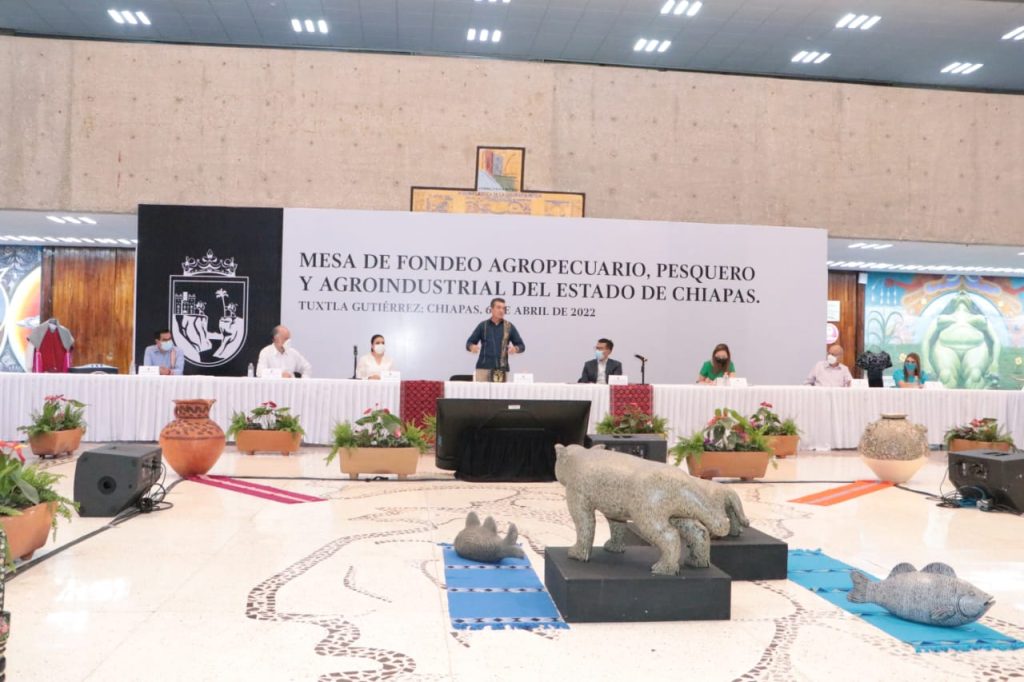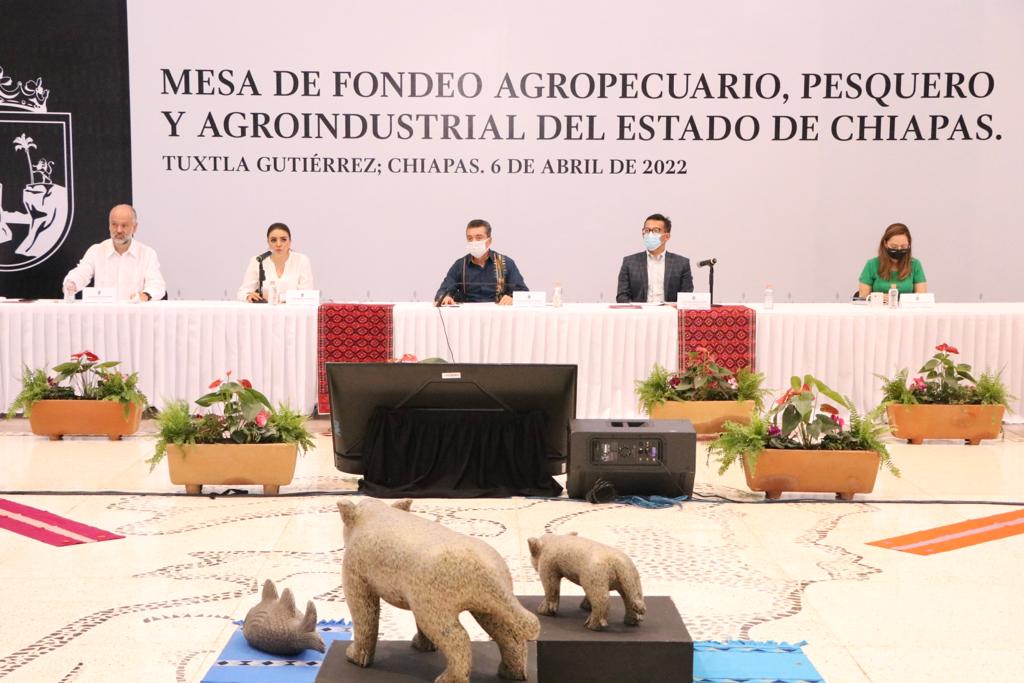 Con la participación de Fideicomisos Instituidos en Relación con la Agricultura (FIRA), el Gobierno de Chiapas y ayuntamientos, se llevó a cabo la Mesa de Fondeo Agropecuario, Pesquero y Agroindustrial del estado, a fin de fortalecer las cadenas productivas, promover la inversión a través de financiamientos a tasas bajas y orientadas a la actividad primaria en los municipios, y brindar a productores alternativas para consolidar sus negocios de siembra y cosecha de cultivos o desarrollo de animales.