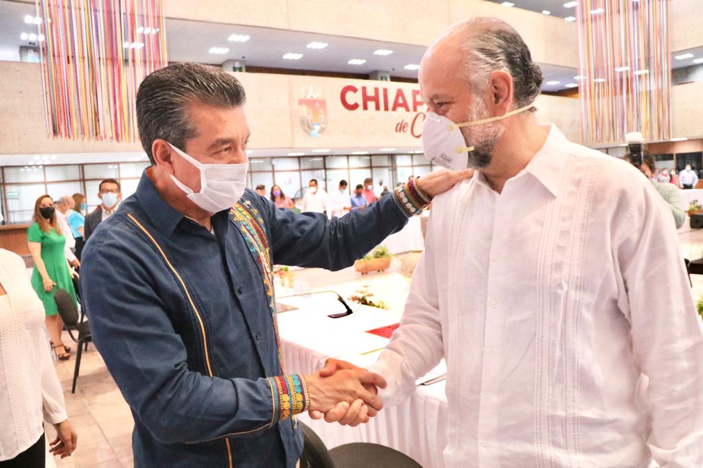 En este marco, el mandatario exhortó a las alcaldesas y los alcaldes a sumar esfuerzos con las instituciones federales y estatales, para atender las necesidades más urgentes de la gente, solventar y detonar las economías locales, y brindar mejores oportunidades a la población de salir adelante, ya que de esta manera se ponen bases firmes en el logro de un verdadero estado de bienestar, donde los sueños y las expectativas de las chiapanecas y los chiapanecos se conviertan en realidad y disfruten de una mejor calidad de vida.