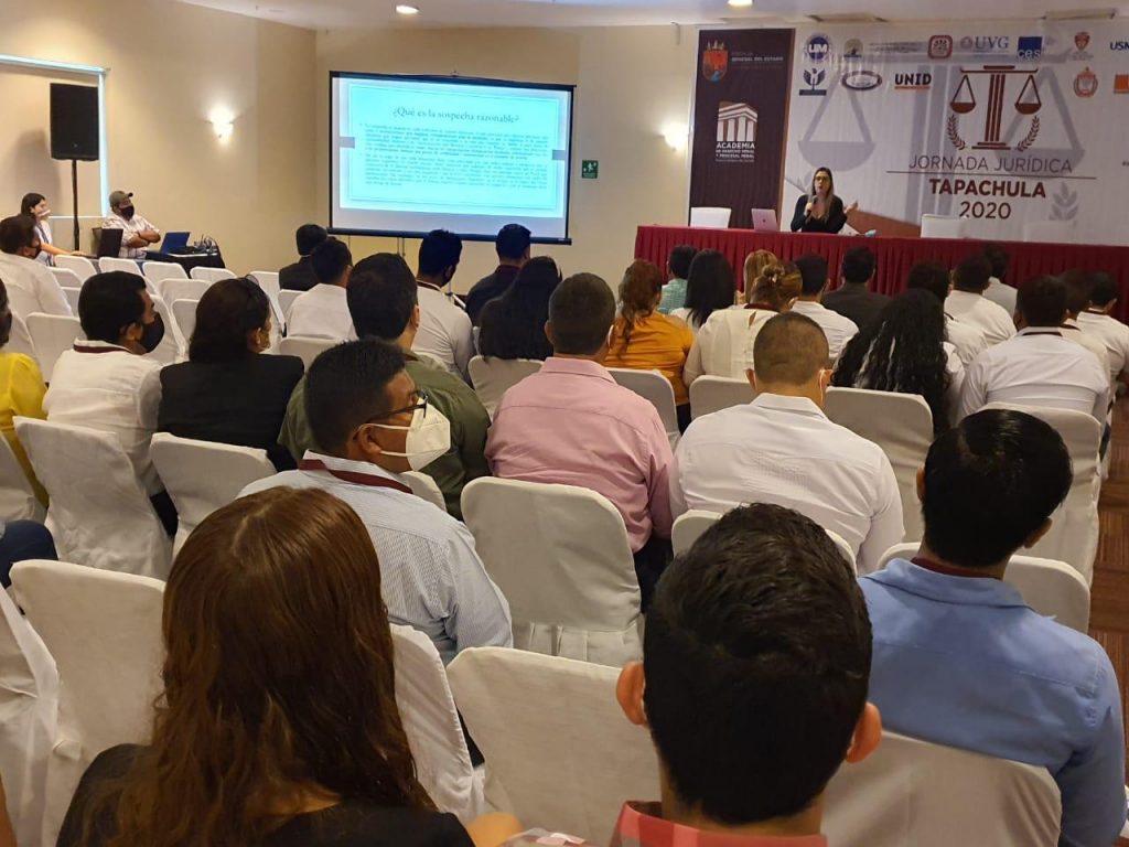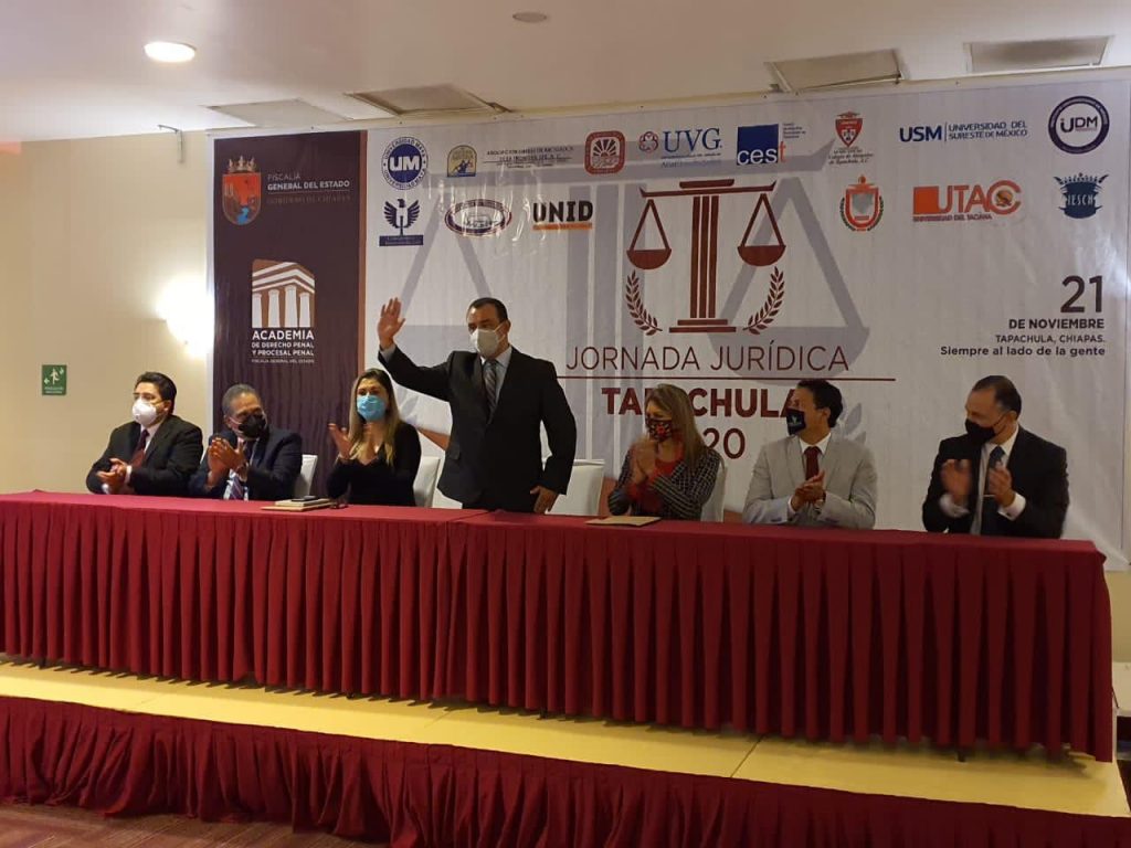 Tuxtla Gutiérrez, Chiapas.- La Fiscalía General del Estado (FGE), a través de la Academia de Derecho Penal y Procesal Penal, llevó a cabo la Jornada Jurídica Tapachula 2020, misma que fue inaugurada por el fiscal de Coordinación, Jordán de Jesús Alegría Orantes en representación del fiscal general Jorge Llaven Abarca, quien impulsa desde el inicio de esta administración la capacitación a servidores públicos y abogados litigantes, a efecto de procurar una justicia más científica, más humana y siempre al lado de la gente.