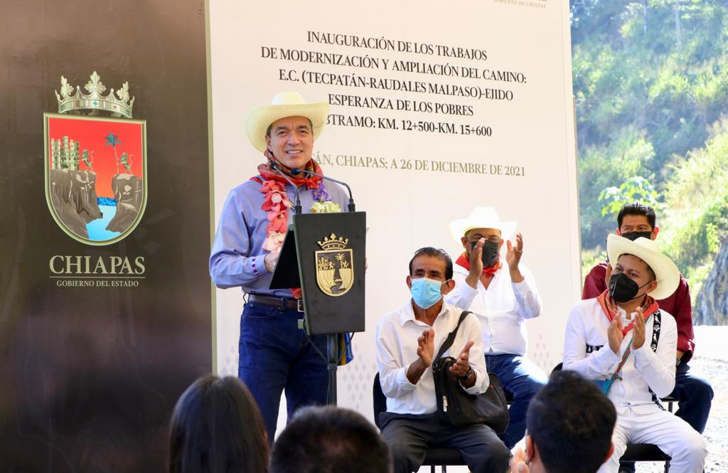 Como resultado de las acciones que se impulsan para que Chiapas cuente con una infraestructura carretera digna y segura, el gobernador Rutilio Escandón Cadenas inauguró la modernización y ampliación del camino Tecpatán-Raudales Malpaso-Ejido Esperanza de los Pobres, mediante la cual, subrayó, se mejorará la movilidad y conectividad entre los pueblos, a fin de trazar un crecimiento que impacte de manera positiva en la economía de la región.