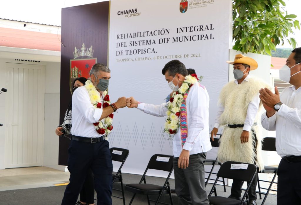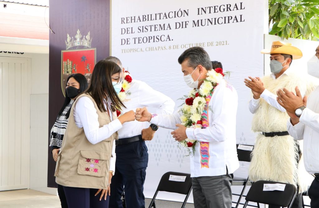 Al inaugurar la rehabilitación integral de las instalaciones del Sistema DIF Municipal de Teopisca, el gobernador Rutilio Escandón Cadenas sostuvo que es satisfactorio constatar que los recursos públicos se invierten para consolidar obras como ésta, que además de ser un espacio de atención a las necesidades más sensibles de la población con mayor vulnerabilidad, también contribuye a la capacitación, economía y bienestar familiar.