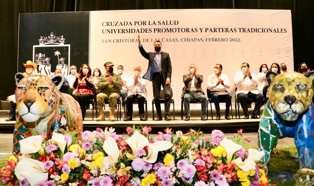 Desde San Cristóbal de Las Casas, inició la Cruzada por la Salud: Universidades Promotoras y Parteras Tradicionales, que busca sumar esfuerzos entre estudiantes de distintas universidades y personas que se dedican a la obstetricia de manera tradicional, a fin de hacer sinergia entre el conocimiento científico y empírico, para fortalecer la atención a las embarazadas.