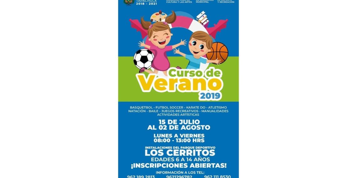 Una buena opción es el Curso de Verano 2019 que ofrece el Ayuntamiento de Tapachula a través del Instituto Municipal para la Cultura y las Artes, de la Secretaría de Educación Municipal y de la dirección de Deportes y Recreación del 15 de julio al 2 de agosto en las instalaciones del Parque Deportivo “Los Cerritos”.