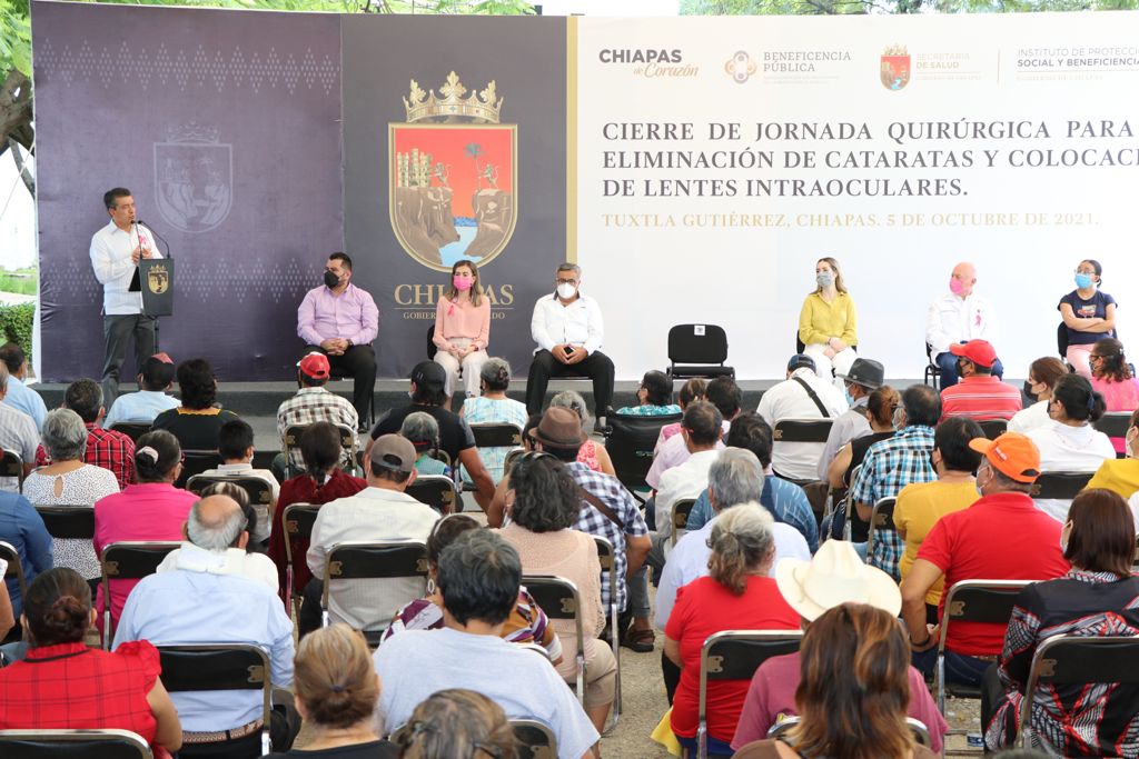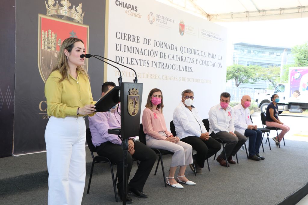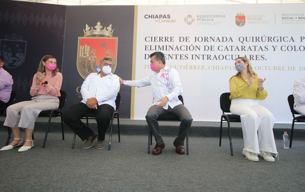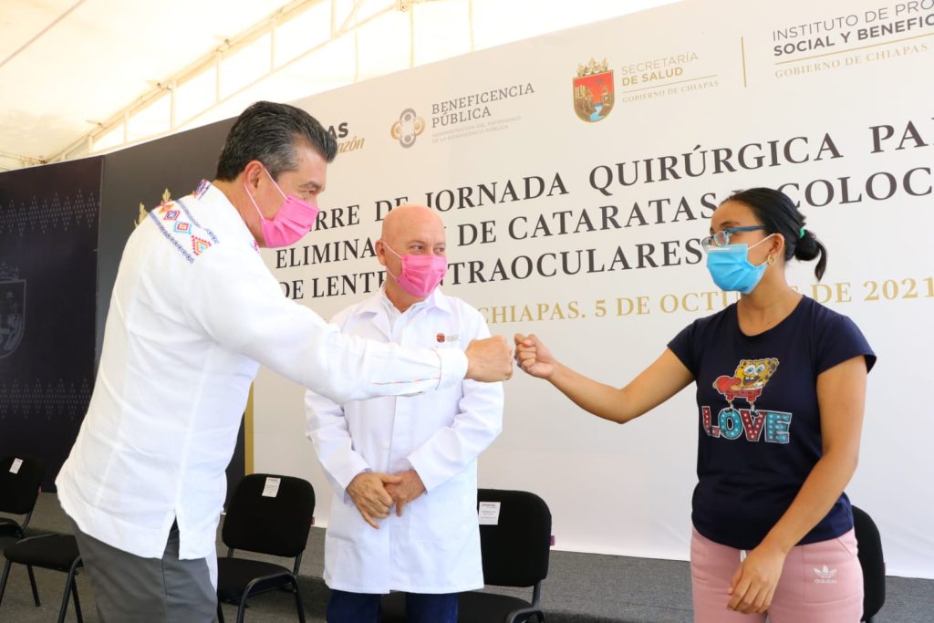 Estuvieron presentes: la directora general del Sistema DIF Chiapas, Deliamaría González Flandez; el gerente de Oftavisión en Chiapas, Carlos Eduardo Alvarado Juárez; así como personas favorecidas con estas cirugías.
