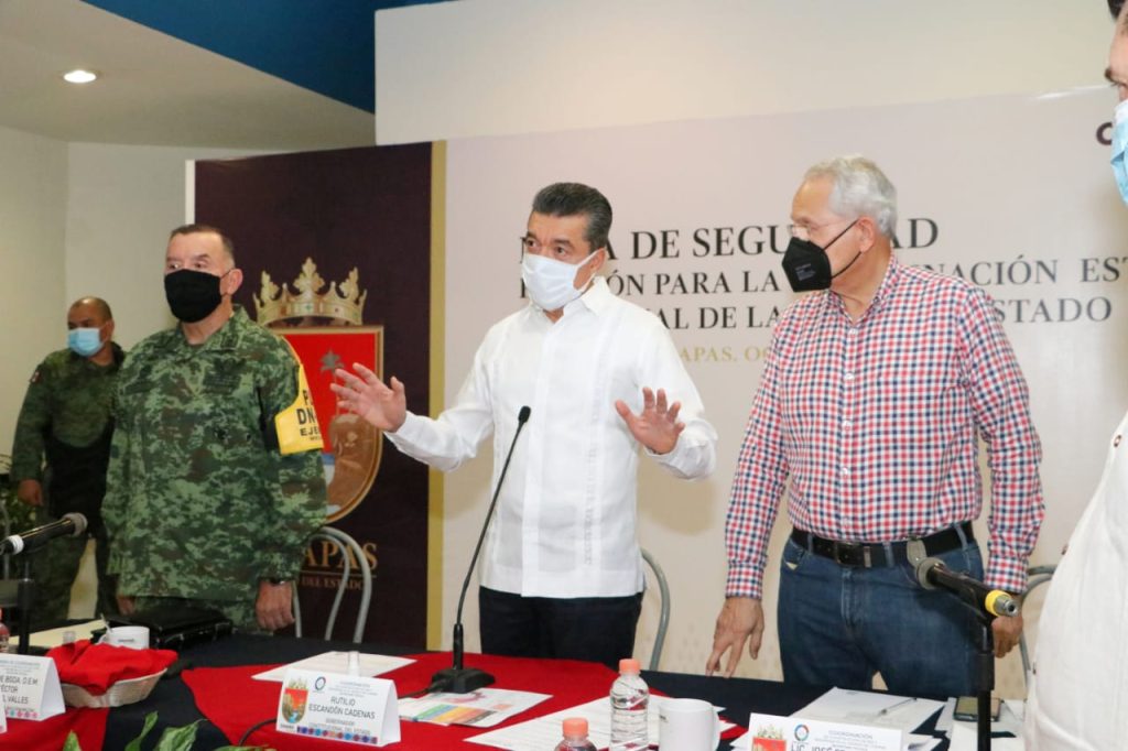 Asimismo, el presidente de la Comisión Estatal de los Derechos Humanos, Juan José Zepeda Bermúdez; el magistrado presidente del Poder Judicial, Juan Óscar Trinidad Palacios; el delegado de la Fiscalía General de la República en Chiapas, Alejandro Vila Sánchez; el comandante de la 38 Zona Naval, Héctor Manuel Valles; en representación de la Coordinación Estatal de la Guardia Nacional en Chiapas, Rubén Salcedo Toledo; la subjefa de Estación del Centro Nacional de Inteligencia en Chiapas, Silvia Elizabeth Flores Camargo; el titular de la Oficina de Representación en Tabasco del Instituto Nacional de Migración, Carlos Alberto Santiago Hernández.