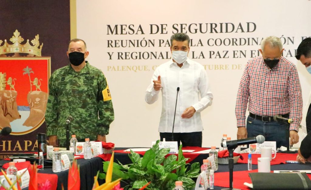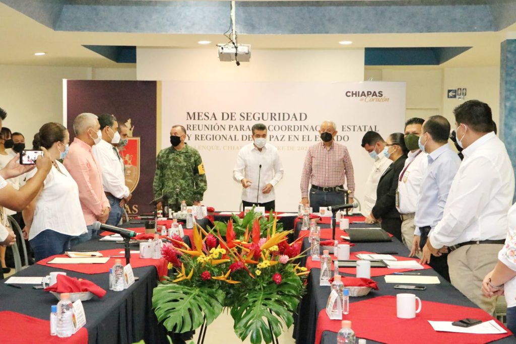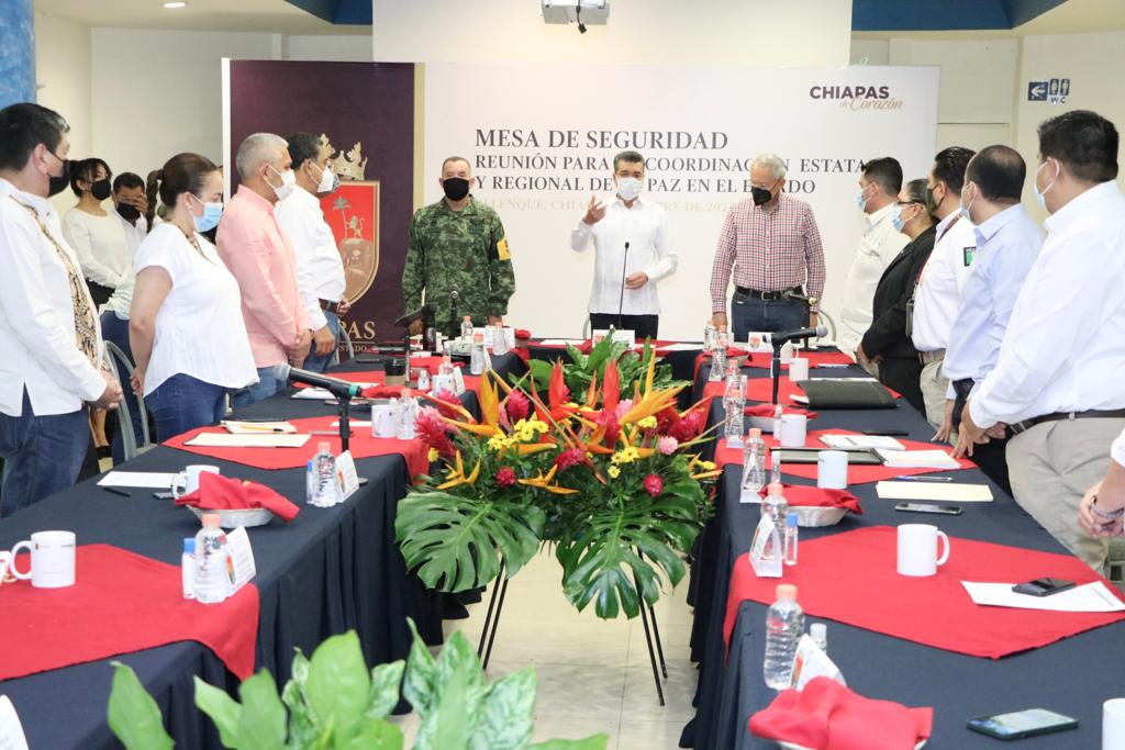 Estuvieron presentes: el secretario técnico de la Mesa de Coordinación Estatal de Construcción de la Paz y Seguridad en Chiapas, José Francisco Trujillo Ochoa; en representación de la Secretaría General de Gobierno, Jorge Cruz Pineda; la secretaria de Seguridad y Protección Ciudadana, Gabriela Zepeda Soto; el fiscal general del Estado, Olaf Gómez Hernández; el titular del Secretariado Ejecutivo del Sistema Estatal de Seguridad Pública, Sergio Alejandro Aguilar Ribera; y el secretario de Protección Civil, Luis Manuel García Moreno.