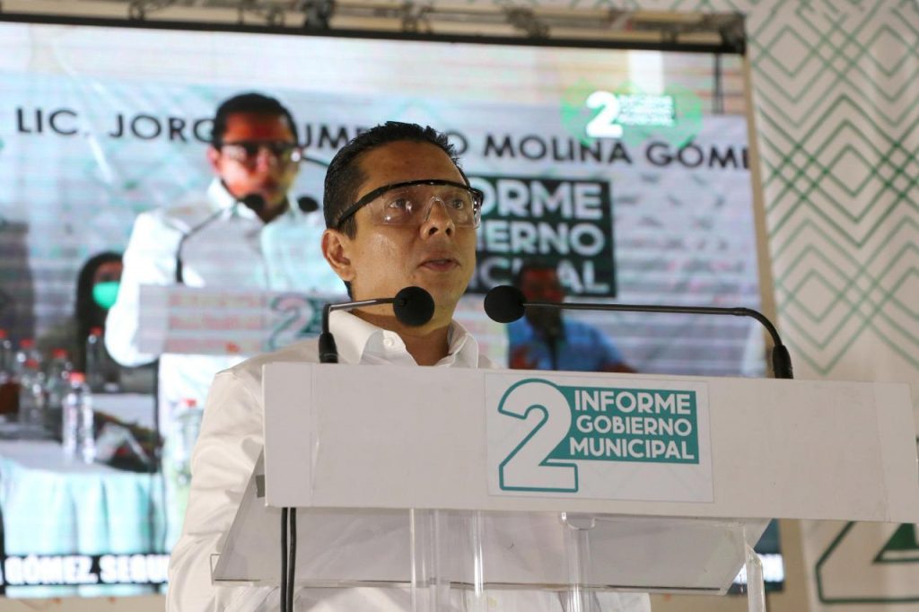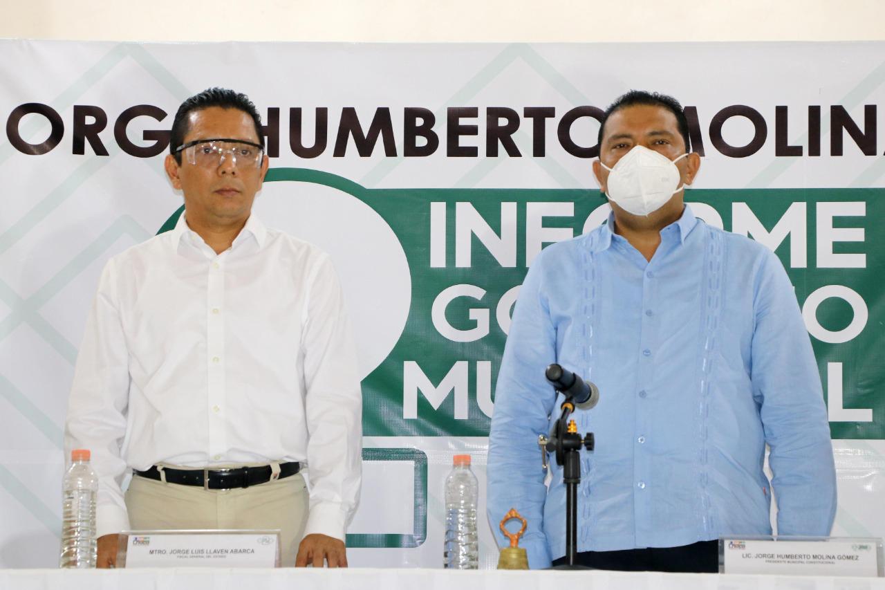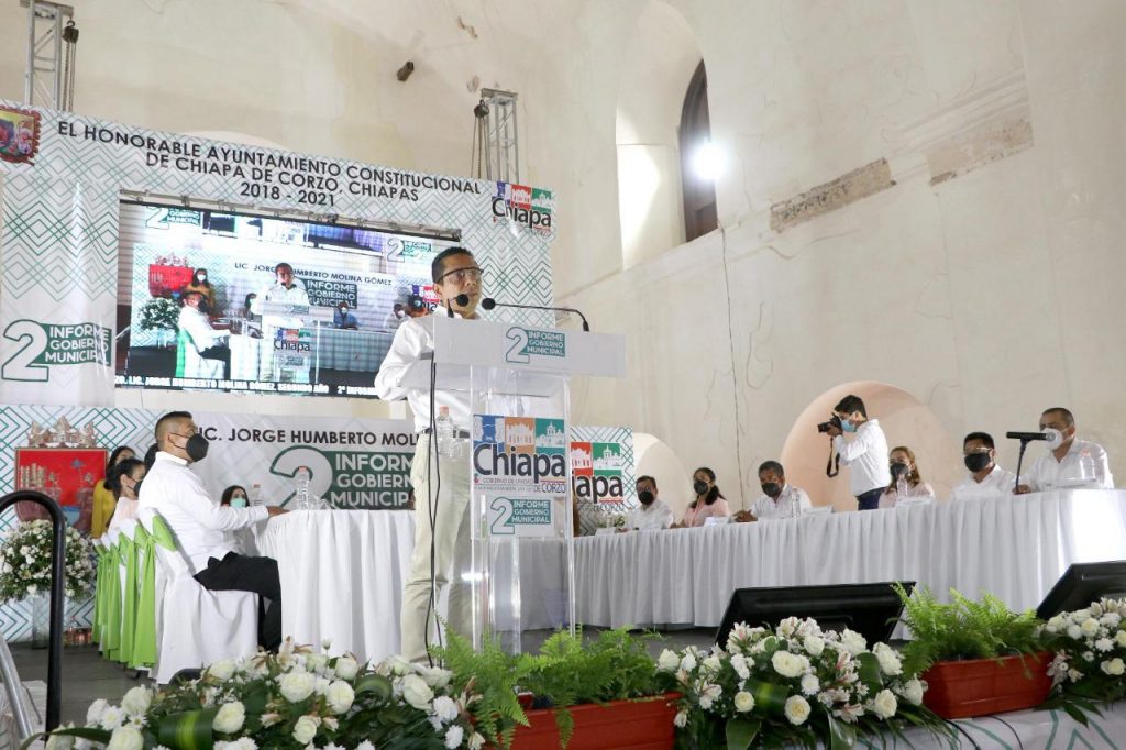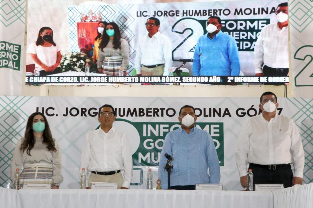 Tuxtla Gutiérrez, Chiapas.- El fiscal general Jorge Llaven Abarca asistió como invitado de honor al Segundo Informe de Gobierno del presidente municipal de Chiapa de Corzo, Jorge Humberto Molina Gómez, donde hizo un llamado respetuoso a las y los alcaldes para sumarse a la estrategia de combate frontal a la corrupción, destacando que hoy en Chiapas la rendición de cuentas a la ciudadanía es una prioridad.
