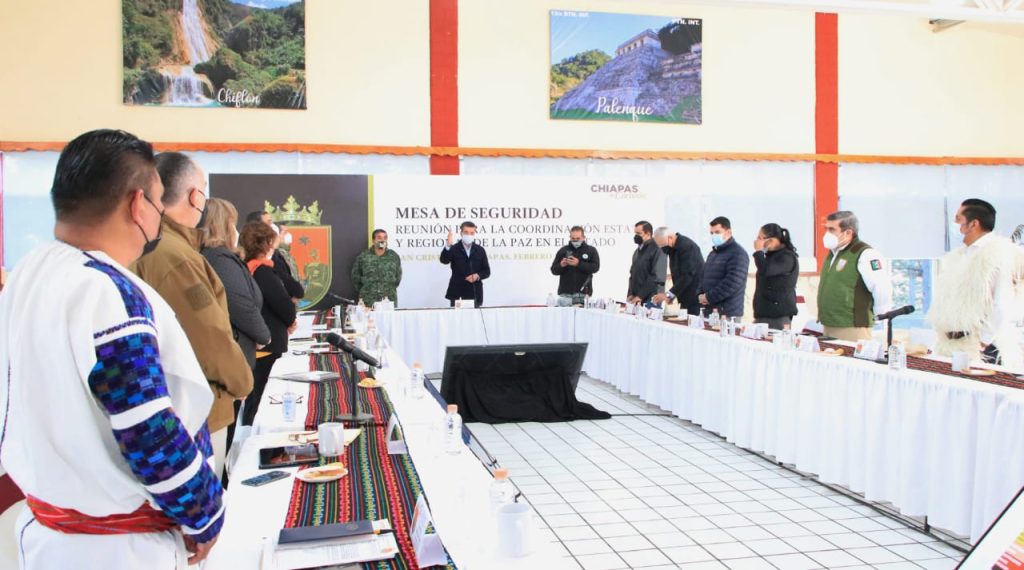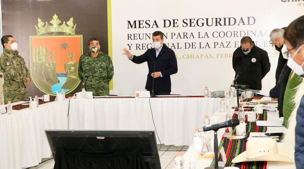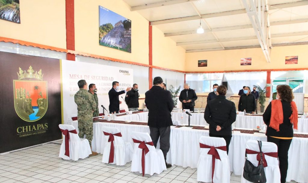 Estuvieron presentes: el secretario técnico de la Mesa de Coordinación Estatal de Construcción de la Paz y Seguridad en Chiapas, José Francisco Trujillo Ochoa; la secretaria general de Gobierno, Victoria Cecilia Flores Pérez; la secretaria de Seguridad y Protección Ciudadana, Gabriela Zepeda Soto; el secretario de Protección Civil, Luis Manuel García Moreno; por parte de la Comisión Estatal de los Derechos Humanos, Claudia Ruiz Coutiño; el magistrado presidente del Poder Judicial, Juan Óscar Trinidad Palacios; y el delegado de Programas Integrales para el Desarrollo, José Antonio Aguilar Castillejos.