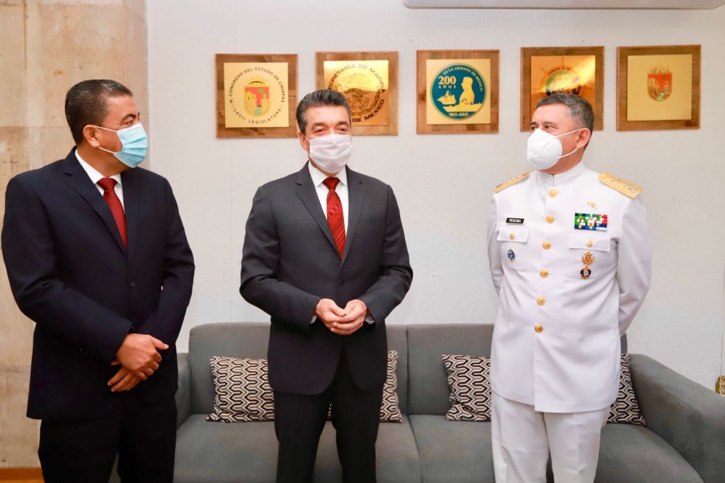 Subrayó que Chiapas mantiene una buena relación con la Marina, y externó la voluntad de su gobierno de fortalecer los lazos institucionales con el propósito de mejorar las tareas de seguridad, ya que al ser la puerta de la frontera sur de México y contar con más de 200 kilómetros de litoral en el océano pacífico, requiere de mayor vigilancia, al tiempo de agradecer todas las acciones a favor de la tranquilidad y bienestar del pueblo chiapaneco.