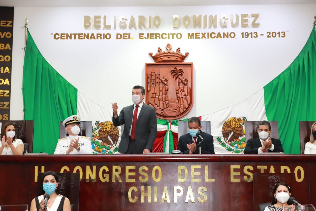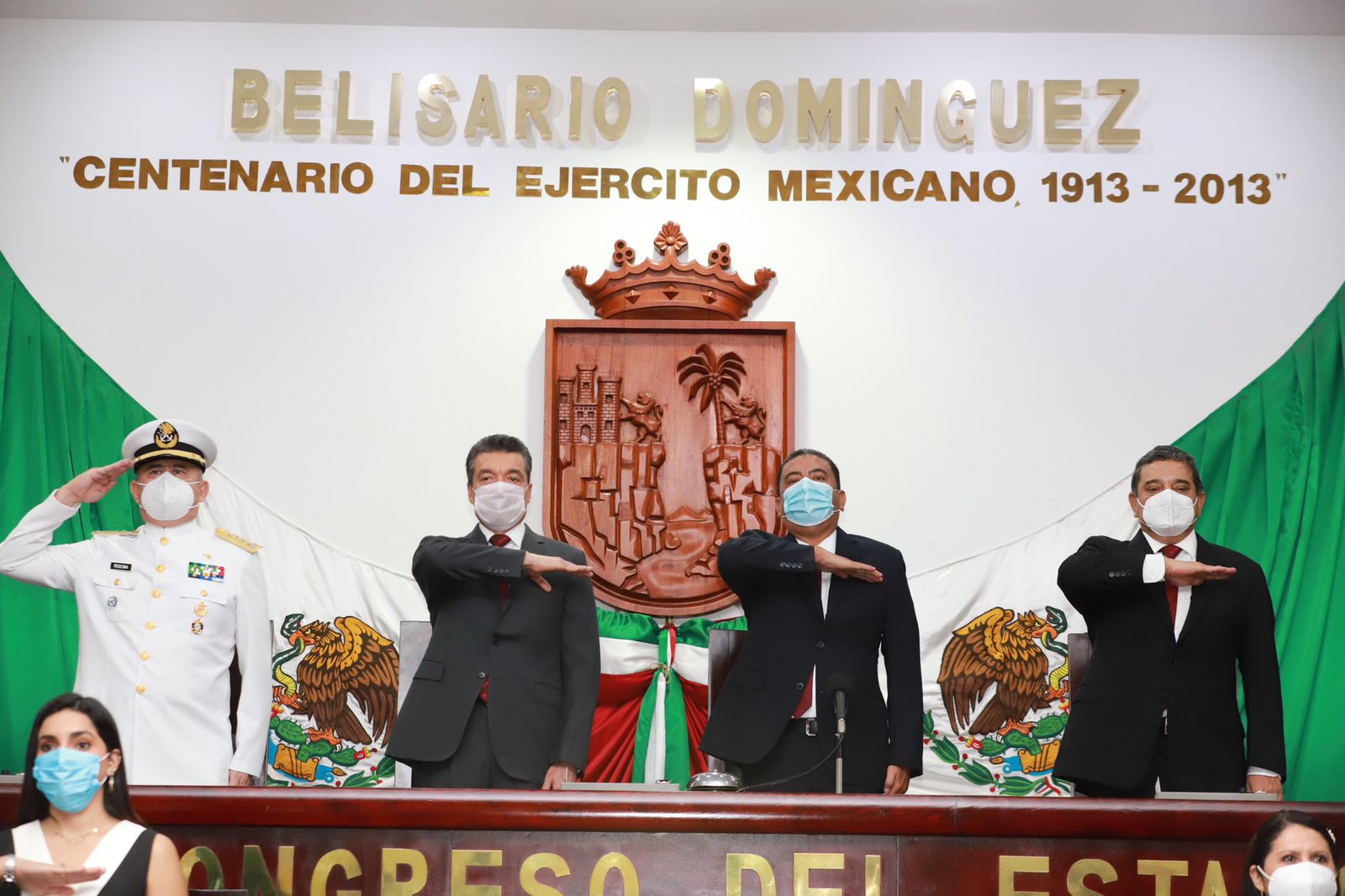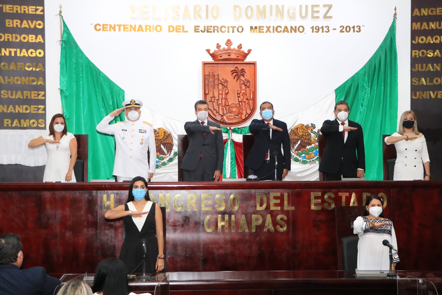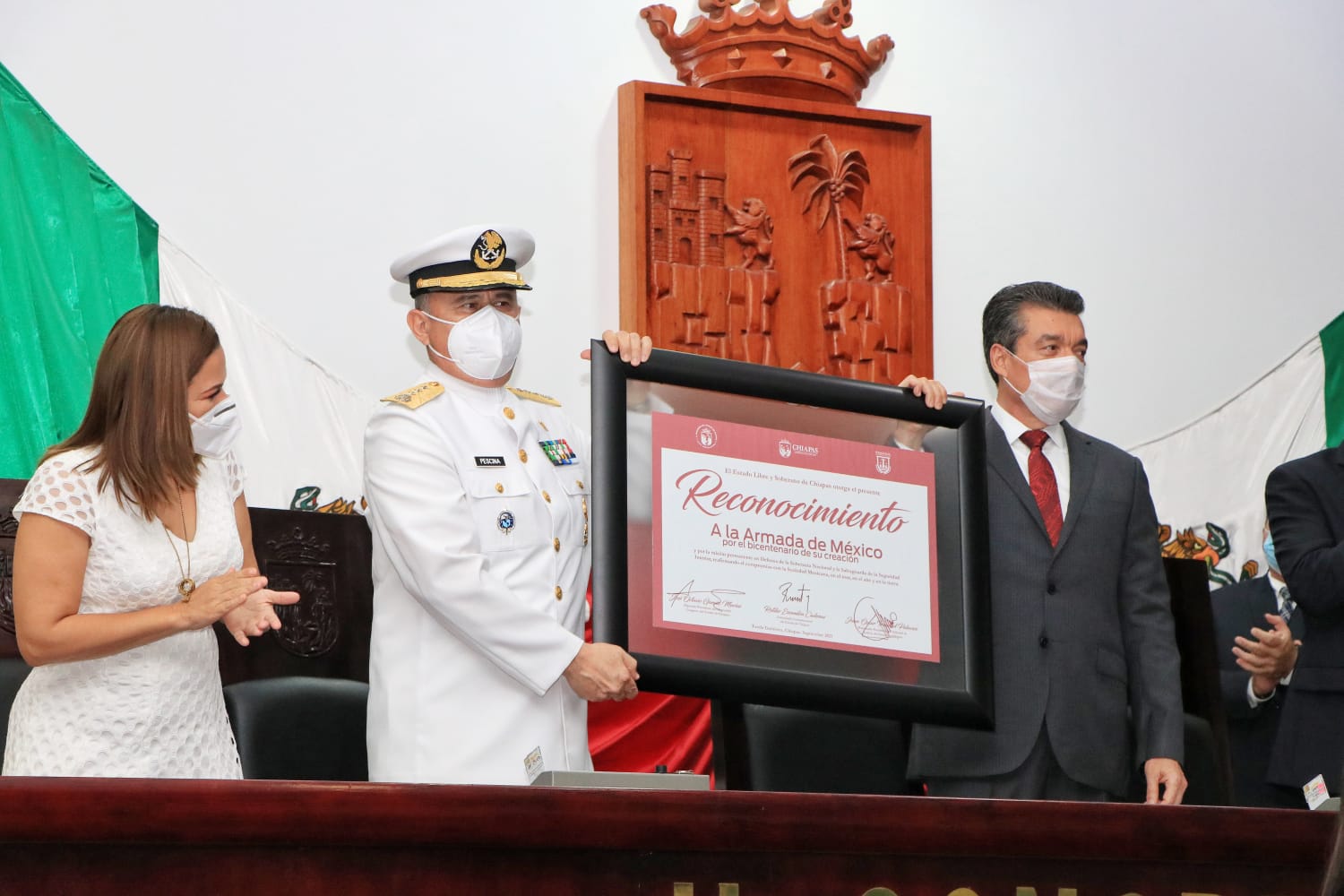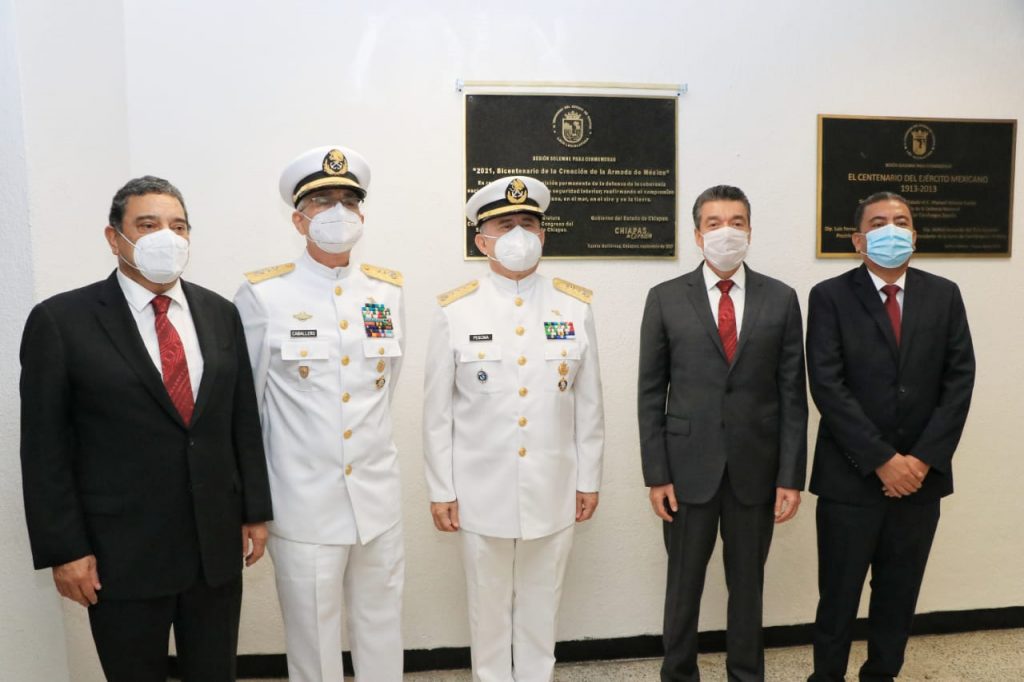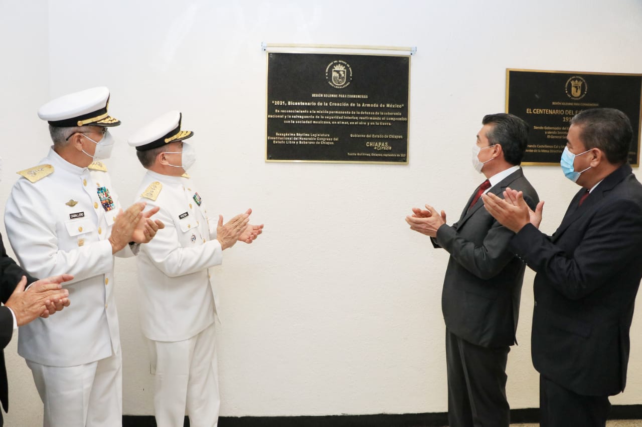 • El gobernador participó en la develación de letras doradas “2021, Bicentenario de la Creación de la Armada de México”, inscritas en el muro de honor del Congreso de Chiapas