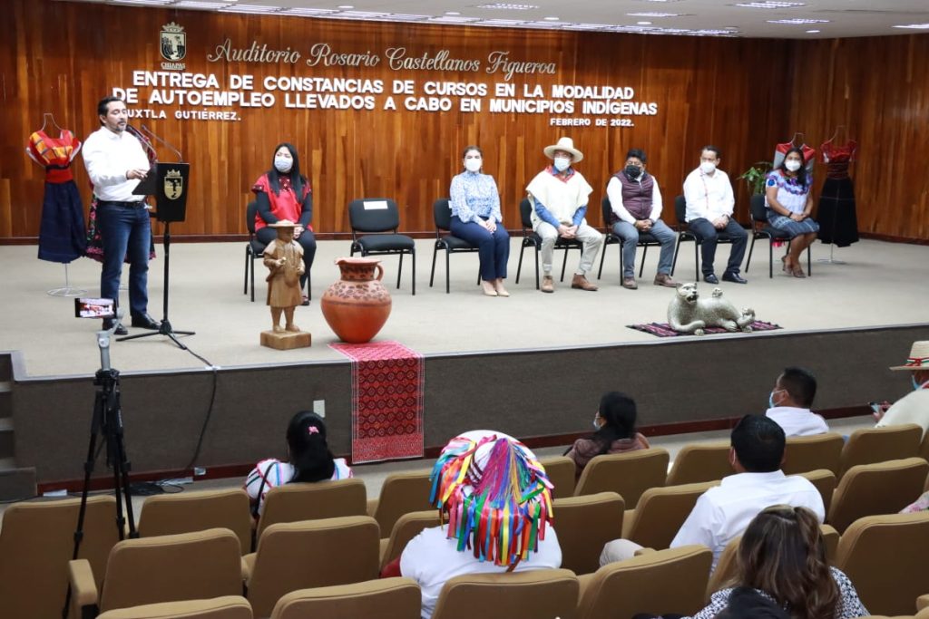 Un total de 420 personas recibieron constancias de capacitación en la modalidad de autoempleo, gracias al Proyecto Estrategias de Apoyo a Población Desempleada, que se llevó a cabo en 13 municipios indígenas de la entidad, con el propósito de brindarles conocimientos y habilidades laborales que les sirvan para incorporarse a un trabajo digno y formal, en beneficio de su economía familiar.