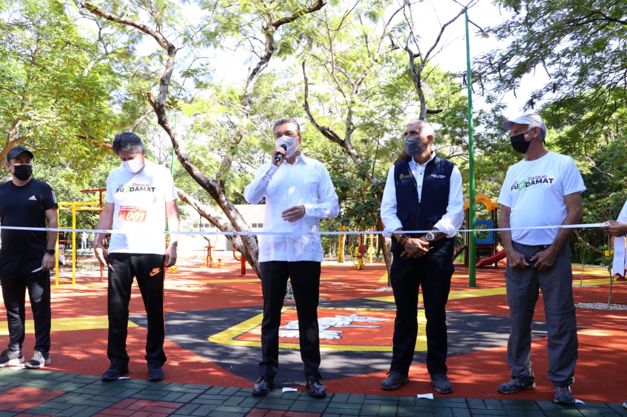 Durante la inauguración del Parque Fundamat en Tuxtla Gutiérrez, el gobernador Rutilio Escandón Cadenas resaltó que es fundamental que el pueblo y los tres órdenes de gobierno estén sumados a fin de resolver los asuntos más sensibles, como se hizo en este lugar en el que se aprovecharon los espacios para la activación física, se sembraron árboles y hoy es en beneficio de la gente, sobre todo, de las niñas, niños y jóvenes.