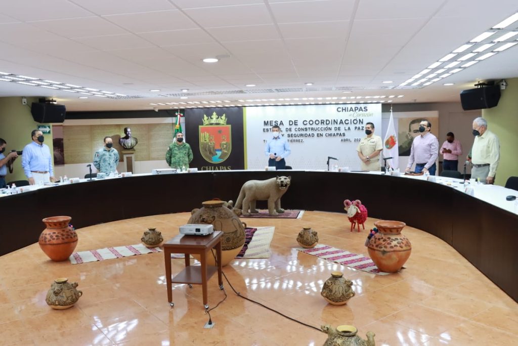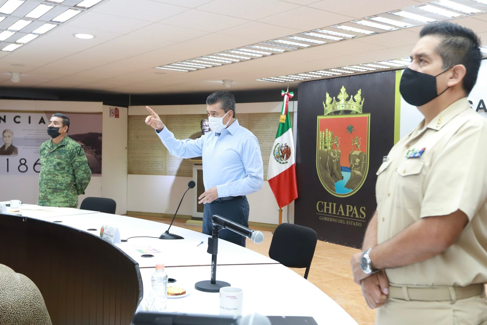 En el marco de la Mesa de Seguridad, el gobernador Rutilio Escandón Cadenas sostuvo que Chiapas va bien en el control y combate al COVID-19, muestra de ello es que registra más de un año en color verde del Semáforo Epidemiológico y mantiene la tasa más baja en casos y defunciones a nivel nacional, sin embargo, dijo, es fundamental vacunarse y continuar con las medidas preventivas para avanzar en la erradicación de la pandemia.