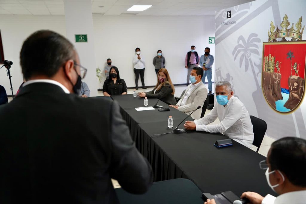 Tuxtla Gutiérrez, Chiapas.- En un marco cordial y de respeto, Jorge Llaven Abarca presentó a Olaf Gómez Hernández como nuevo fiscal general a las y los fiscales de Distrito y de Materia de este órgano de procuración de justicia, en el cual los exhortó a continuar garantizando el acceso a la justicia con una política de cero tolerancia y cero impunidad.