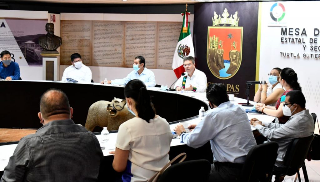 Tuxtla Gutiérrez, Chiapas; 09 de septiembre de 2020.- Una reunión constructiva y de mucha voluntad fue la que se desarrolló entre el secretario general de Gobierno, Ismael Brito, y la comisión representativa de la Asamblea Estatal de Organizaciones Sociales del Movimiento Magisterial y Popular (CNTE-AEOS), en las instalaciones de Palacio de Gobierno.