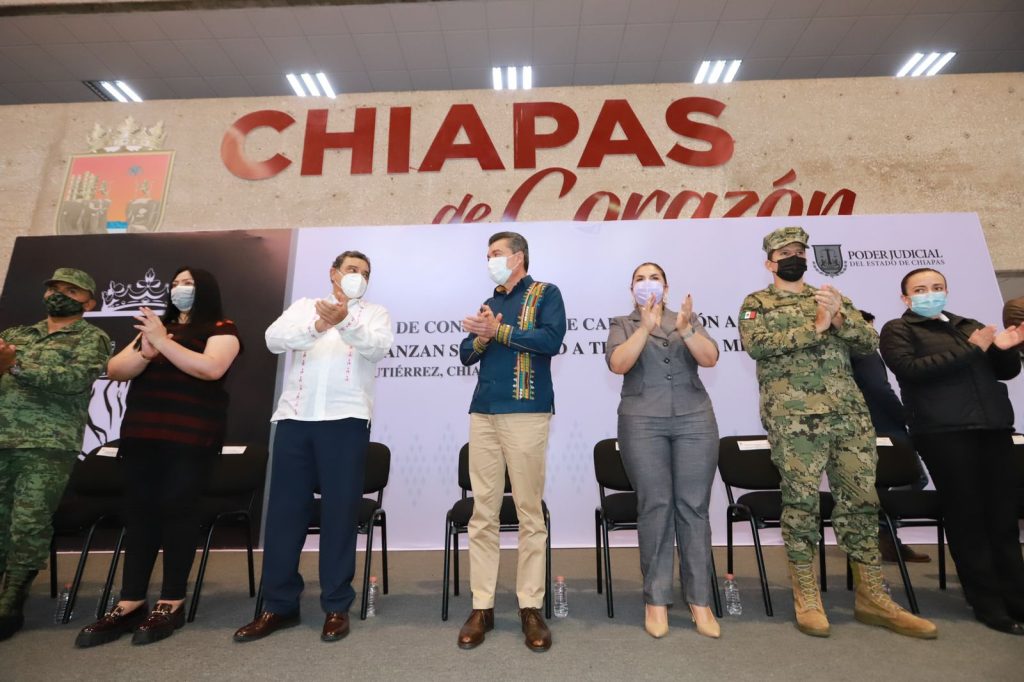 Subrayó que en la entidad se privilegia la vida, la libertad y el respeto a los derechos humanos, por ello se toman en cuenta todos los elementos enmarcados en la Constitución Política de México y de Chiapas, que también señalan que estas acciones de justicia social se pueden cumplir a través de la capacitación para el trabajo, la salud, la educación, el deporte, y del comportamiento general, lo que permitirá a las personas robustecer sus capacidades y aportar a la construcción de una mejor sociedad.