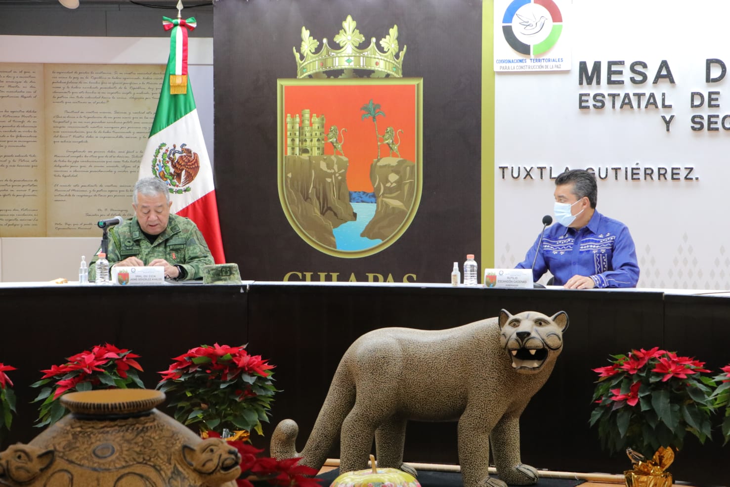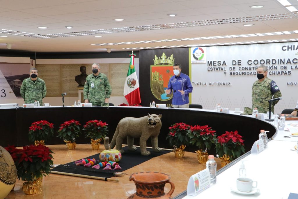 “Debo mencionar que en materia de seguridad pública y gracias al trabajo de esta Mesa de Seguridad, Chiapas es uno de los estados más seguros del país, lo que demuestra el compromiso de las instancias aquí representadas, de las y los chiapanecos y sus instituciones, atrayendo al turismo local y nacional, inversiones y, sobre todo, una mayor confianza hacia las autoridades de los tres órdenes de gobierno”, enfatizó.