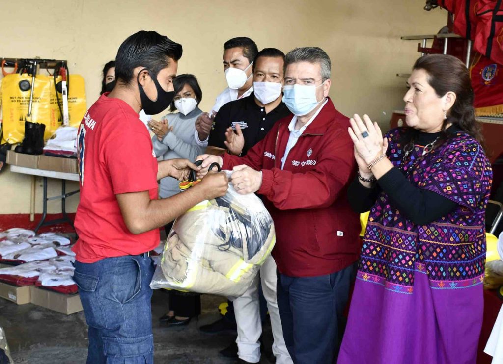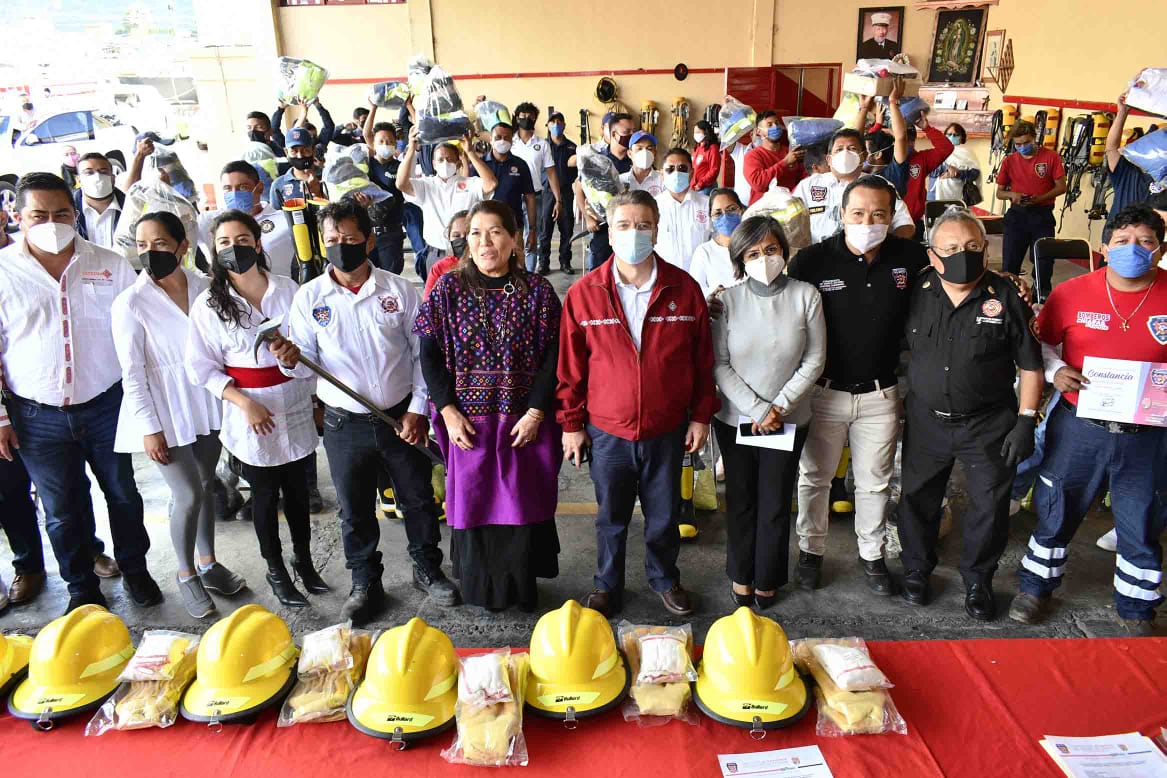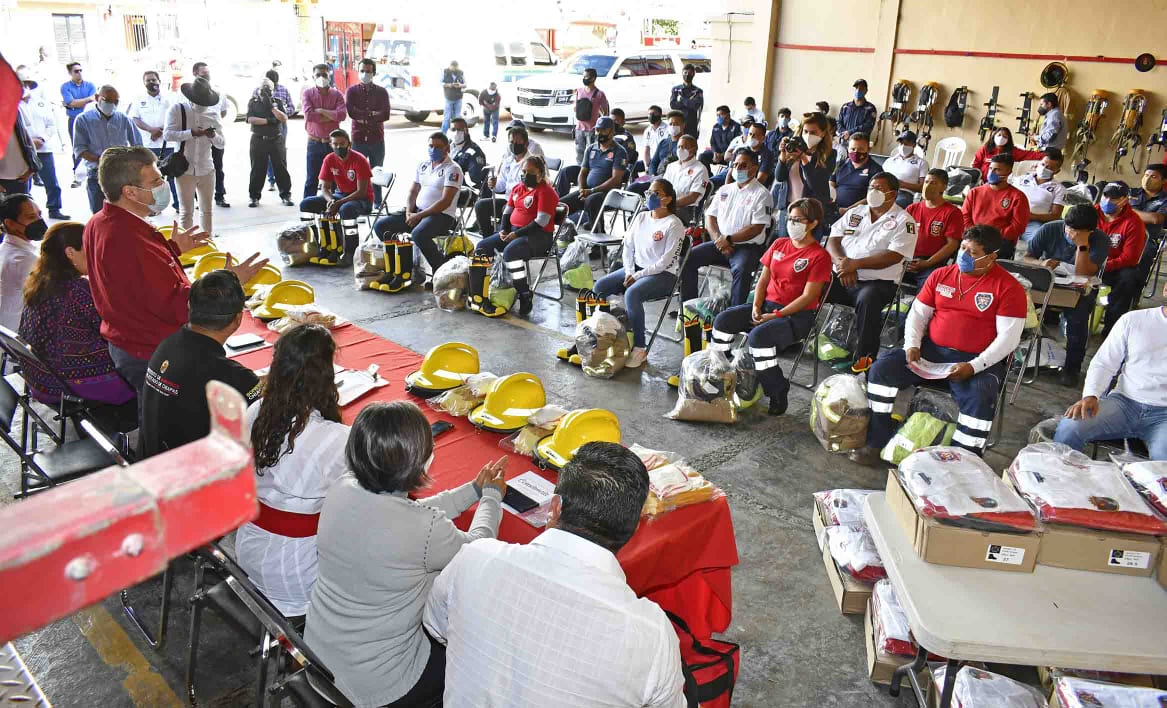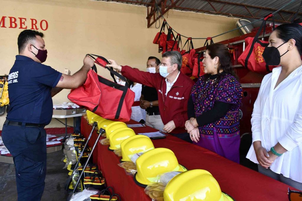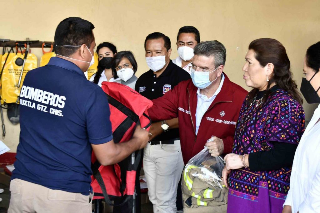 Acompañado por la presidenta de San Cristóbal de Las Casas, Jerónima Toledo Villalobos, la síndica municipal de Frontera Comalapa, Guadalupe Aguilar, y el director del Instituto de Bomberos, se entregaron equipos a las comandancias regionales de Tuxtla Gutiérrez, Cintalapa, Frontera Comalapa, Venustiano Carranza, Ocozocoautla, Mezcalapa y San Cristóbal de Las Casas.
