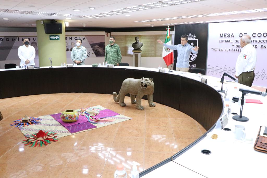 En la Mesa de Seguridad se informó que Chiapas cuenta con 8 mil 400 Comités Comunitarios de Protección Civil, por lo que el gobernador Rutilio Escandón Cadenas agradeció la labor solidaria que realizan las más de 142 mil 800 personas que los integran y contribuyen en la salvaguarda de la integridad y vida de la población.