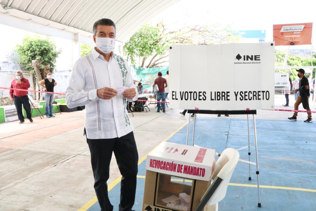 A temprana hora, el gobernador de Chiapas, Rutilio Escandón Cadenas fue partícipe del ejercicio de Revocación de Mandato, donde calificó a este proceso como un acto democrático e histórico, en el que el presidente de la República, Andrés Manuel López Obrador es ejemplo y punto de partida para que las demás autoridades que vienen del voto del pueblo, realicen este tipo de acciones.
