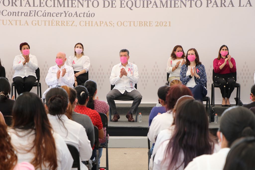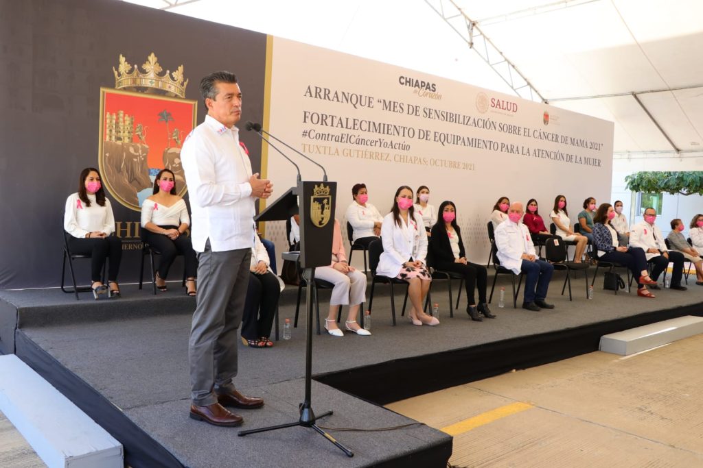 Al encabezar el arranque de la campaña “Mes de Sensibilización sobre el Cáncer de Mama 2021”, el gobernador Rutilio Escandón Cadenas reiteró el compromiso y la voluntad de su gobierno de hacer todo lo humanamente posible para fortalecer las acciones enfocadas a prevenir y garantizar atención profesional, digna y humana a las mujeres que padecen esta enfermedad.