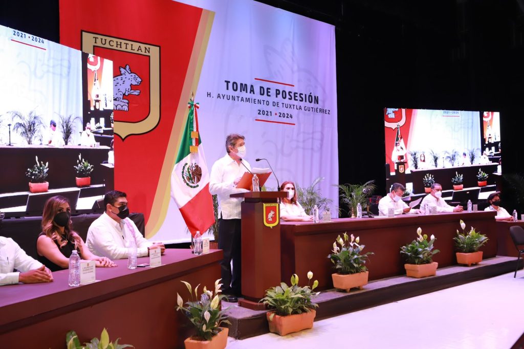 “Hace tres años por decisión mayoritaria de las y los tuxtlecos asumí la alta responsabilidad de conducir los destinos de esta gran ciudad, y hoy tengo el privilegio de continuar con el encargo, otorgado también por voluntad mayoritaria de la ciudadanía, por lo tanto esta es la oportunidad para decirles que vamos a seguir dignificando la tarea de gobernar en unidad y con propuestas sólidas, legítimas, de igualdad y cercana a la gente”, concluyó el alcalde.