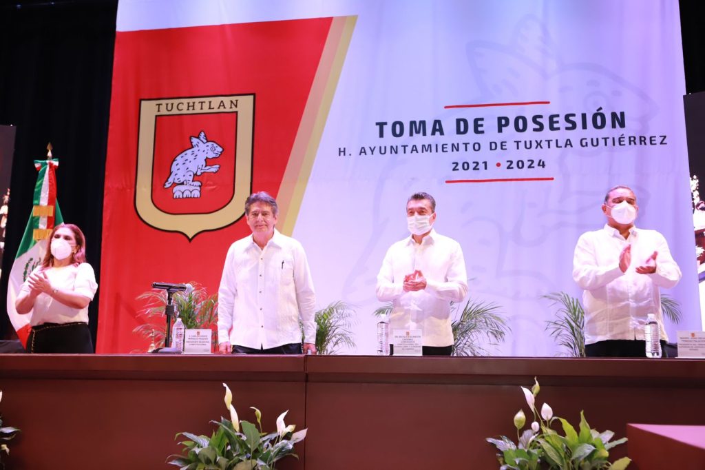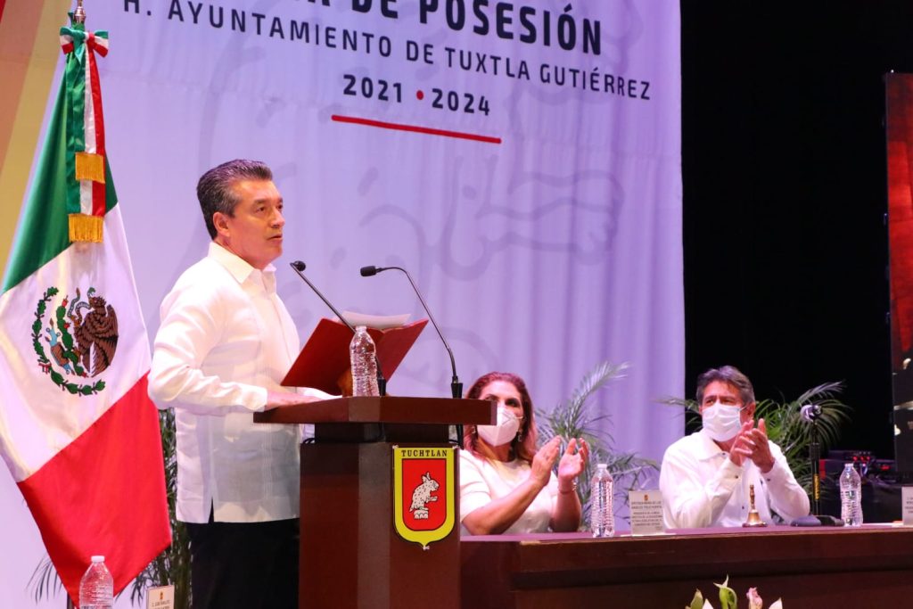 Al manifestar su respeto a la autonomía de los ayuntamientos, el jefe del Ejecutivo estatal felicitó al alcalde Morales Vázquez y a las nuevas autoridades de Tuxtla Gutiérrez al tiempo de expresar que la capital chiapaneca y toda la entidad, requieren de servidoras y servidores públicos honestos y transparentes que impulsen su progreso.