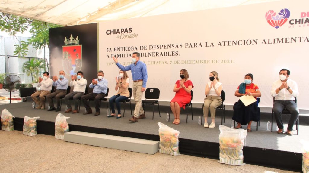 Luego de agradecer a las y los servidores públicos de los tres poderes del Estado, así como integrantes del sector empresarial que han contribuido en esta causa, Escandón Cadenas pidió a las alcaldesas y alcaldes empujar en la misma dirección para sacar adelante las necesidades más sensibles del pueblo de Chiapas, como es la alimentación, ya que, dijo, si las personas están bien nutridas, harán frente de mejor manera a cualquier enfermedad o adversidad.