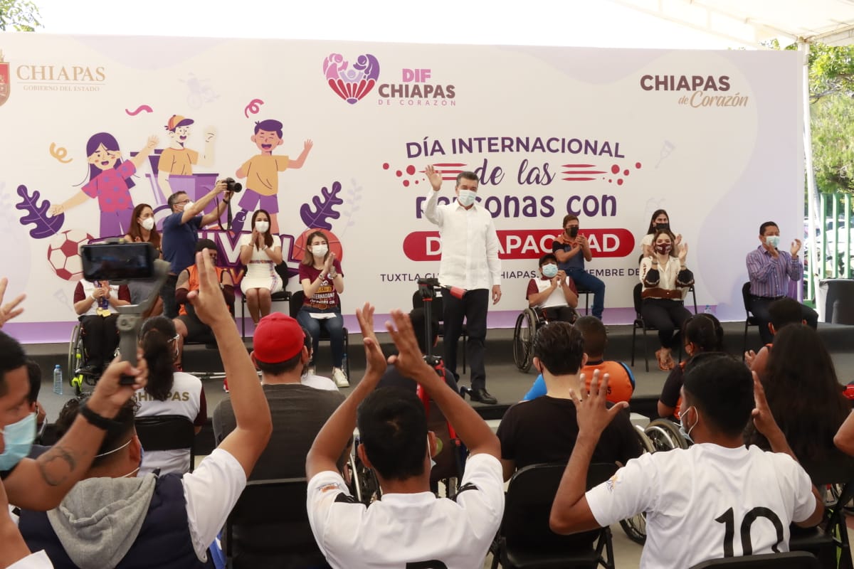 El gobernador Rutilio Escandón Cadenas encabezó la inauguración del Festival Deportivo en el marco del Día Internacional de las Personas con Discapacidad, donde sostuvo que este gobierno seguirá invirtiendo e impulsando este tipo de acciones que, además de abonar al bienestar y la salud, contribuyen a la construcción de un Chiapas y un México más justo, igualitario e incluyente.