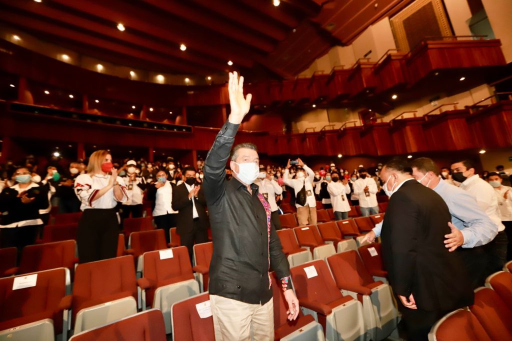 Tras dar la bienvenida a las y los participantes, el mandatario subrayó que es un honor para Chiapas ser sede de este encuentro nacional, pues constituye un símbolo del regreso a las actividades escolares presenciales, las cuales iniciaron hace algunos meses, y precisó que también demuestra que en la entidad las cosas van bien, y de que cuando se trabaja en unidad, responsabilidad, compromiso y fraternidad, se puede hacer frente a cualquier desafío, como ha sucedido con la pandemia.