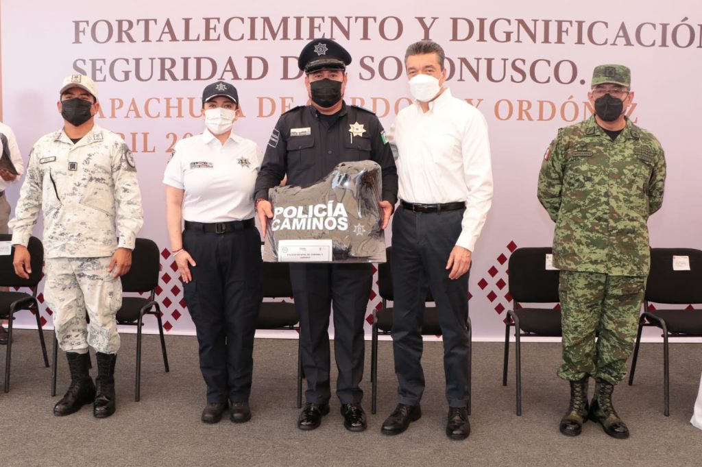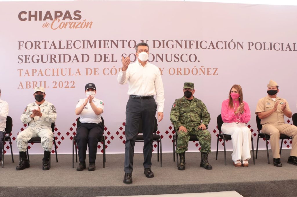 Al inaugurar la remodelación y ampliación del Cuartel de la Secretaría de Seguridad y Protección Ciudadana en Tapachula, y entregar uniformes y equipamiento del Grupo Antipandillas, el gobernador Rutilio Escandón Cadenas sostuvo que la seguridad constituye el primer paso para garantizar el bienestar, el progreso y crecimiento de los pueblos, por ello seguirán invirtiendo en este rubro, a fin de contar con corporaciones policiales mejor preparadas, equipadas y profesionales.