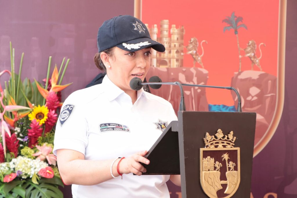 Luego de reiterar el compromiso con la seguridad del Soconusco, la titular estatal en esta materia, Gabriela Zepeda Soto, precisó que se cumplen tres instrucciones del gobernador: fortalecer la seguridad de esta región; dignificar a las y los policías, a quienes les entregan instalaciones dignas, equipos y uniformes para un mejor desempeño; y eficientizar los recursos públicos, pues estas acciones se hicieron con ahorros y economías presupuestales.