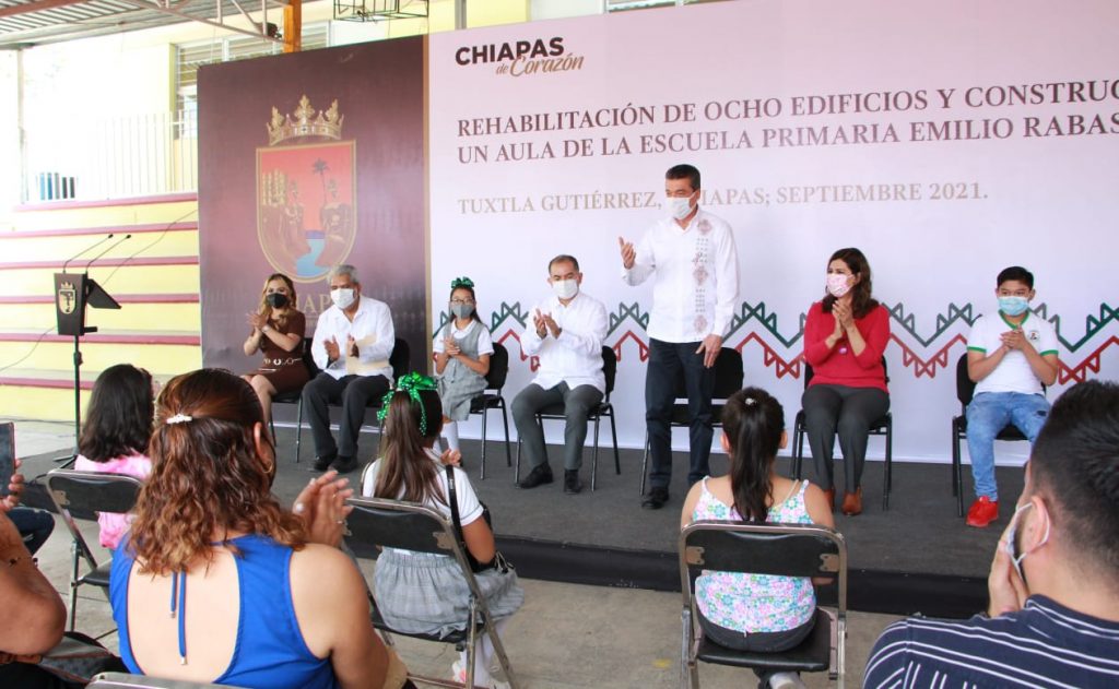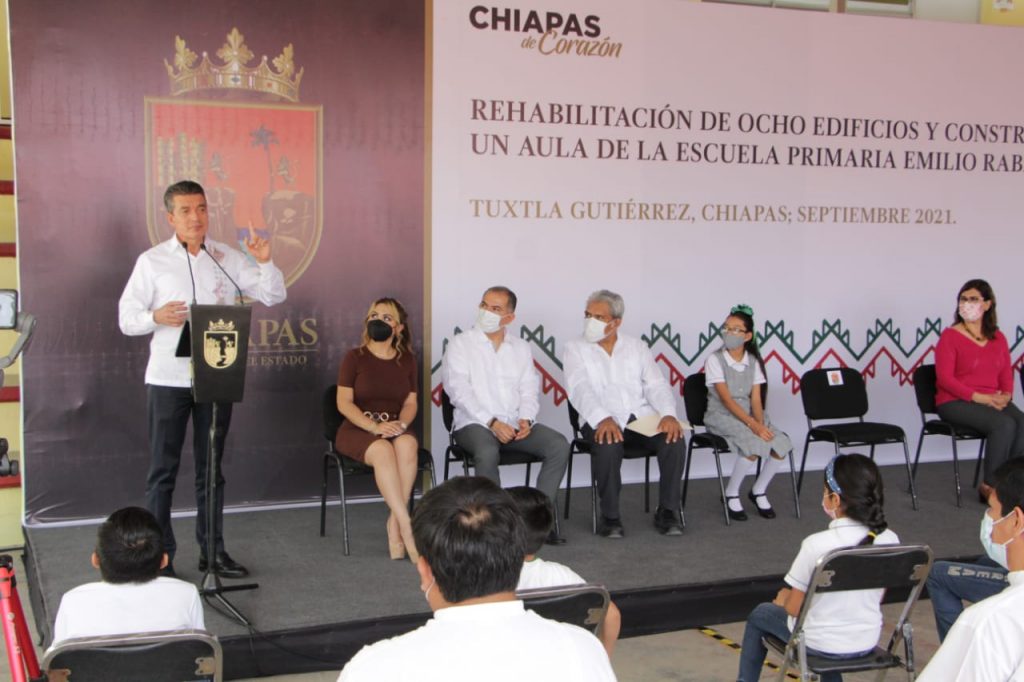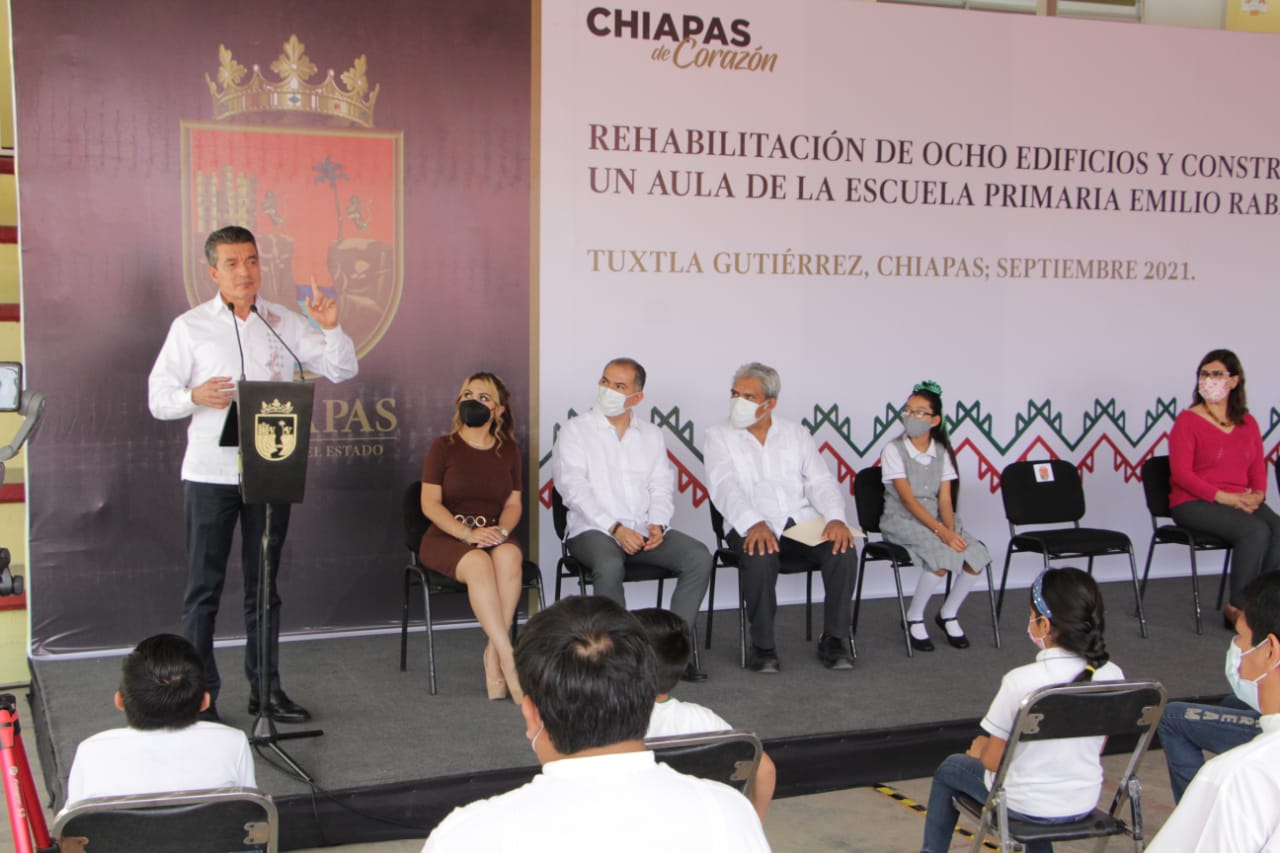 Al inaugurar la remodelación de ocho edificios de aulas didácticas, un aula de usos múltiples, obras de exterior y equipamiento de la Escuela Primaria “Dr. Emilio Rabasa Estebanell”, de la Colonia San José Chapultepec, de Tuxtla Gutiérrez, el gobernador Rutilio Escandón Cadenas sostuvo que a fin de brindar espacios educativos dignos y óptimos en el proceso de enseñanza-aprendizaje, hoy el recurso público se invierte para atender las necesidades reales y prioritarias.
