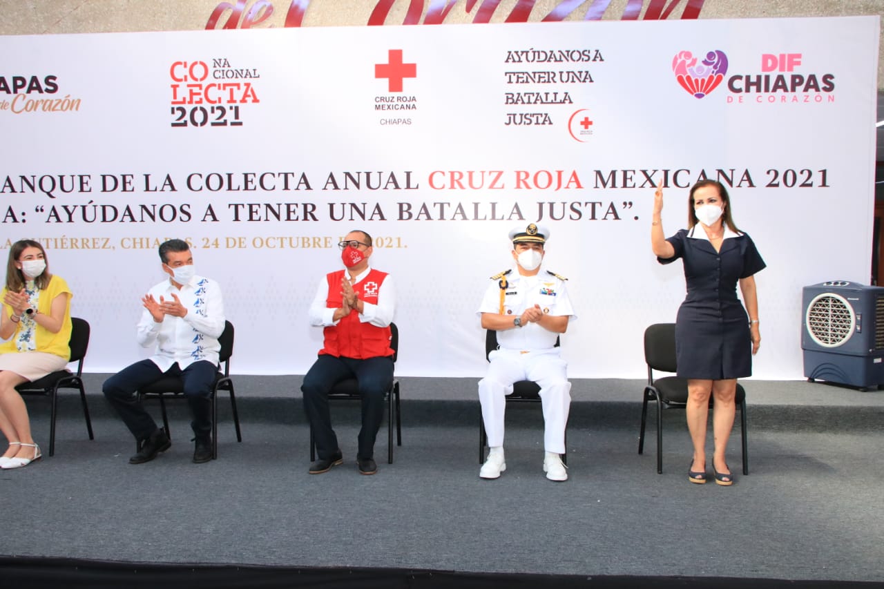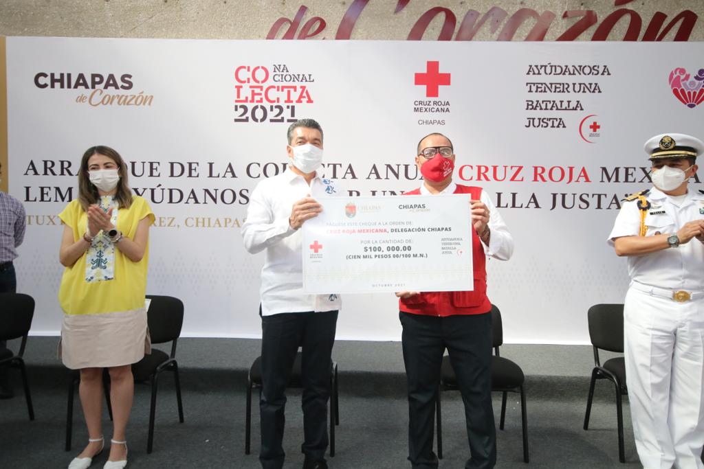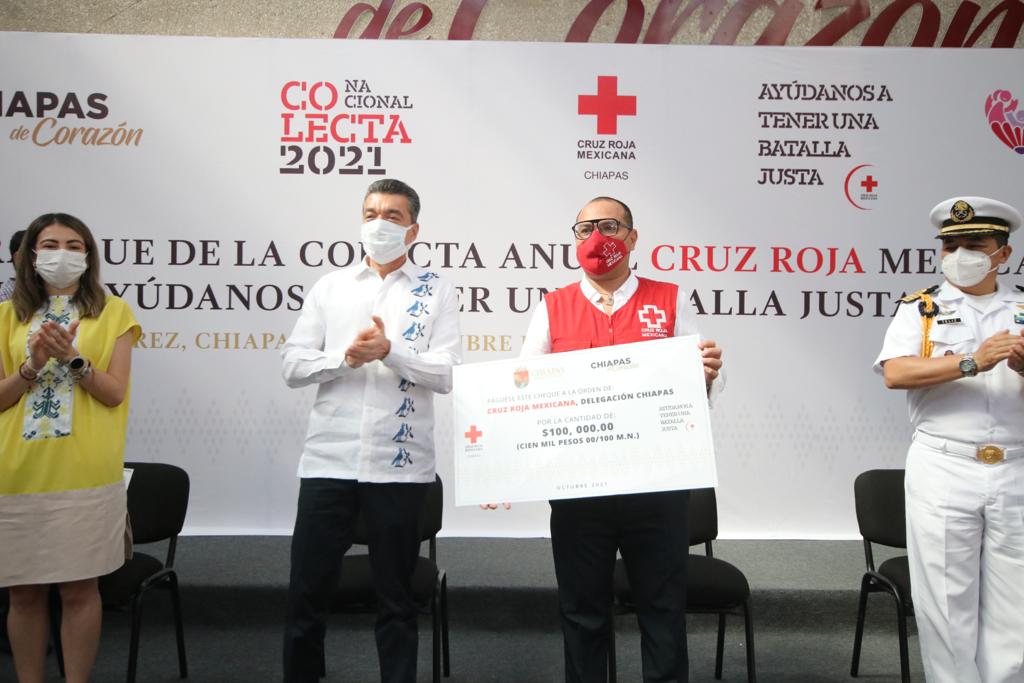 Con el lema “Ayúdanos a tener una batalla justa”, en Chiapas arrancó la Colecta Anual Cruz Roja Mexicana 2021, donde el gobernador Rutilio Escandón Cadenas pidió al pueblo chiapaneco mostrar una vez más su generosidad y amor al prójimo, atendiendo el llamado de esta noble institución a apoyar en la recaudación de donativos.