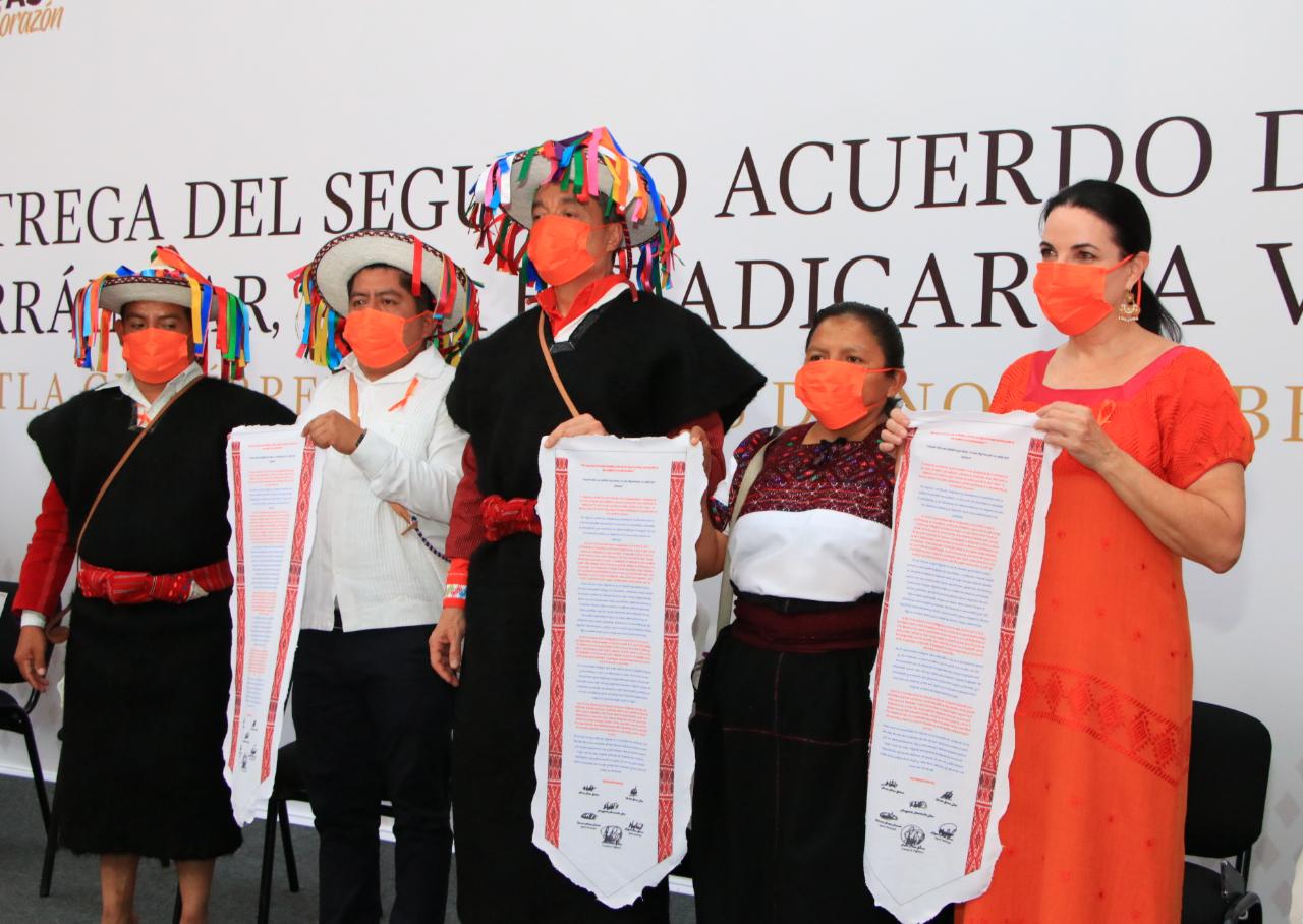 En el marco del Día Internacional de la Eliminación de la Violencia contra la Mujer, el gobernador Rutilio Escandón Cadenas recibió el Acuerdo de Asamblea Indígena para Erradicar la Violencia hacia las Mujeres, pactado por la localidad de Majoval, Larráinzar, la segunda comunidad que se suma a estas acciones que buscan incidir de manera positiva en la convivencia social, la calidad de vida y el respeto a los derechos de las mujeres.