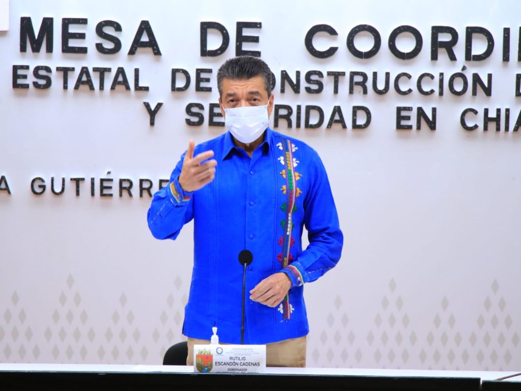 Durante la Mesa de Coordinación Estatal para la Construcción de la Paz y Seguridad, el gobernador Rutilio Escandón Cadenas informó que Chiapas va bien en el control, mitigación y combate a la pandemia, muestra de ello es que se han cumplido 18 días sin defunciones por COVID-19, sin embargo, insistió en el llamado a la población a vacunarse y no bajar la guardia ante esta enfermedad, pues el riesgo de contagio no ha desaparecido.