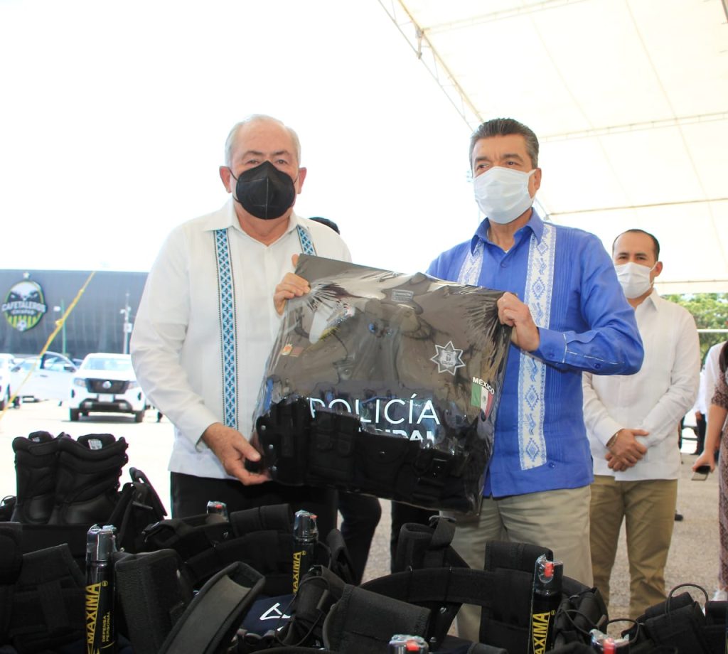 Rutilio Escandón y Leonel Cota encabezan entrega de patrullas y equipos para fortalecer a las policías