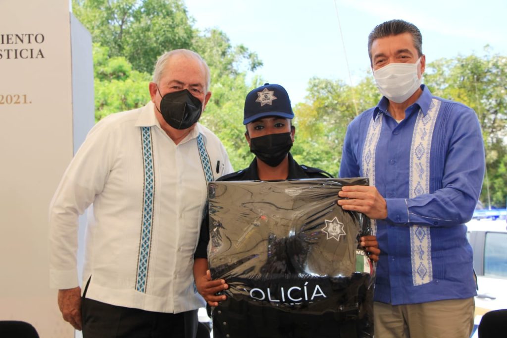 Durante este acto se entregó a la Secretaría de Seguridad y Protección Ciudadana 2 mil 550 kits de uniformes y otros aditamentos; se benefició a la Fiscalía General de Estado con 64 vehículos; a fin de fortalecer a las policías municipales, se entregaron al Sesesp 63 patrullas de las cuales 12 unidades son para combatir la violencia de género, 2 mil 684 kits de uniformes, así como apoyos para reforzar los programas del Centro Estatal de Prevención Social y Participación Ciudadana y del Centro Estatal de Control de Confianza Certificado.