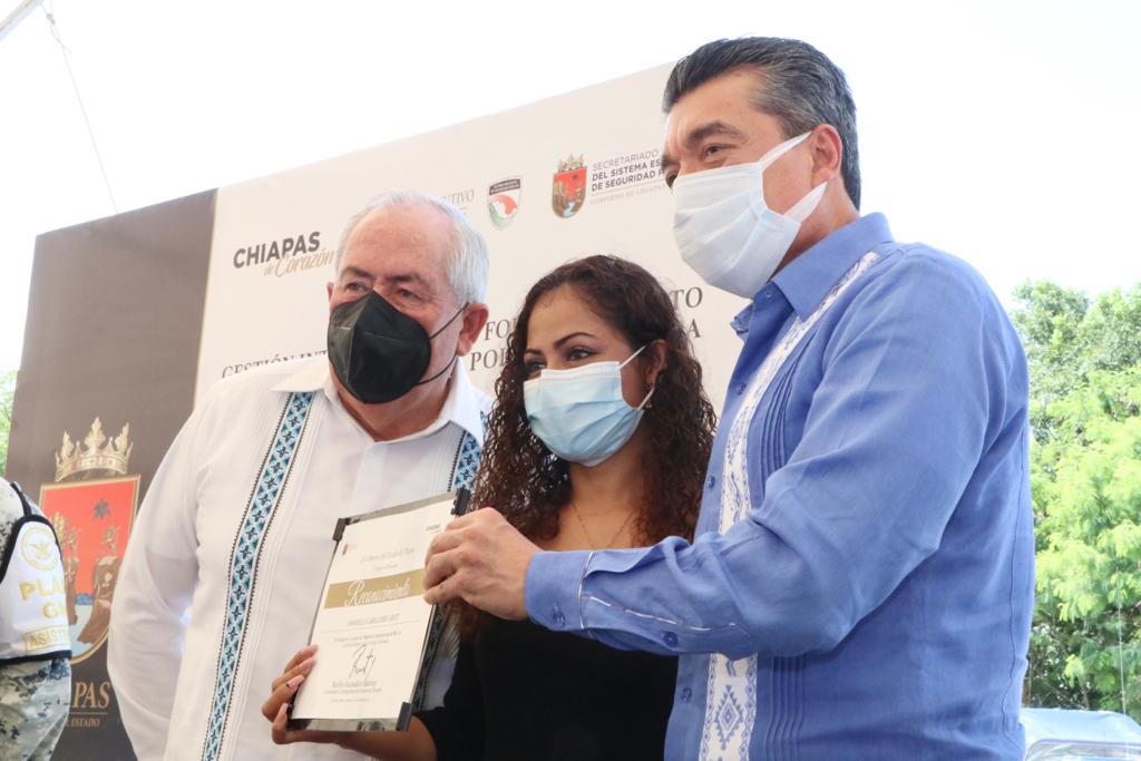 En este marco, el mandatario reconoció el respaldo de la Federación para mejorar las acciones en el rubro de seguridad y mencionó que trabajar en unidad y con honestidad trae grandes resultados, por ello Chiapas mantiene la suma de esfuerzos entre los tres órdenes de gobierno, para continuar como uno de los estados con menos delitos de alto impacto e incidencia delictiva, y lograr la certificación del 100 por ciento de elementos policiales.