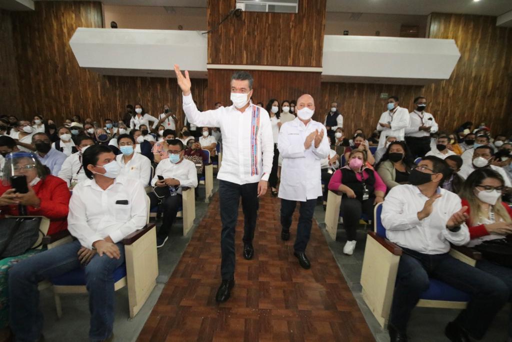 En este evento, realizado en el Auditorio Los Constituyentes de la Universidad Autónoma de Chiapas, el mandatario reconoció al personal de la salud por el esfuerzo y vocación que han mostrado, principalmente ante la pandemia de COVID-19, en los hospitales, en las brigadas que recorren las casas y negocios, y en el proceso de vacunación.